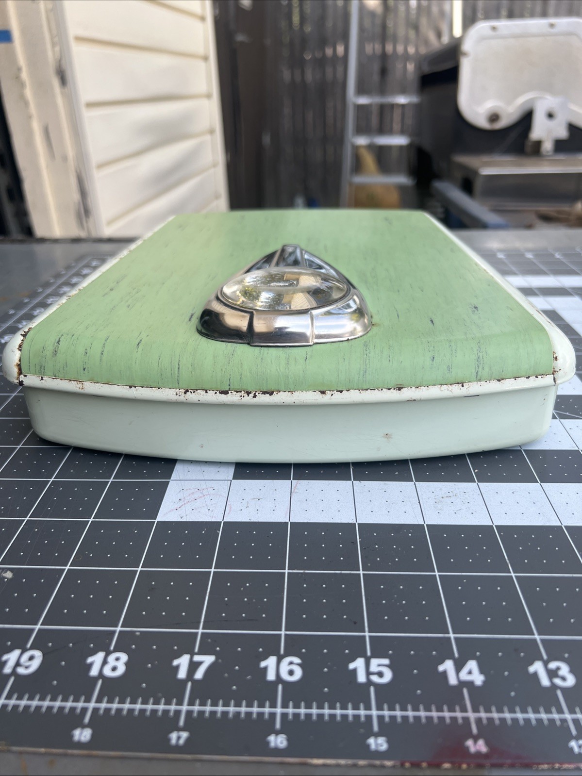 Vintage Borg Bathroom Scale Avocado Green Mid Century Art Deco Mod Bubble Glass
