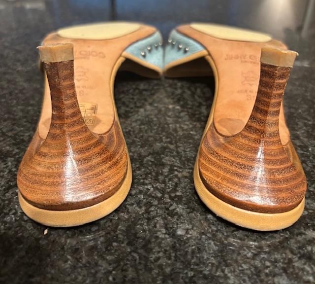 как выглядит JIMMY CHOO Denim Leather Slide Sandals 3"heels EU Size 39.0/US Size 8.0-8.5 фото