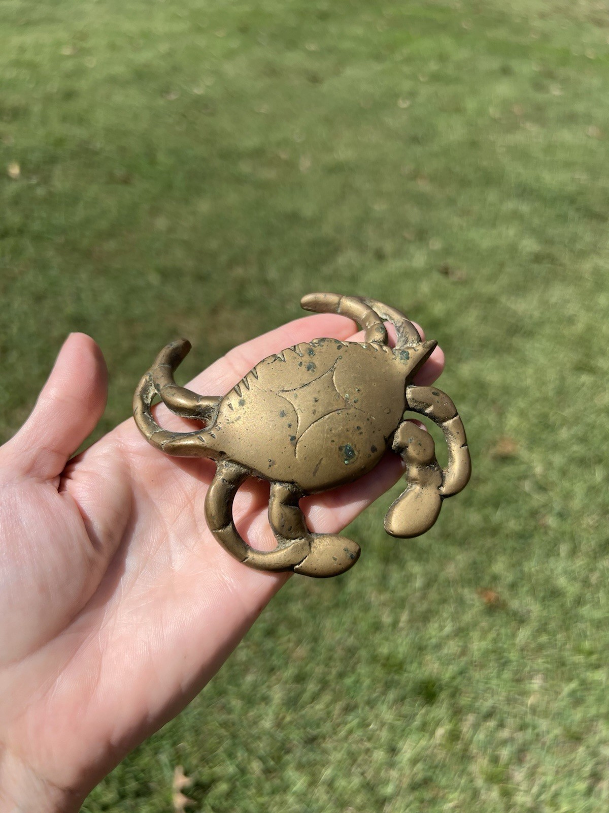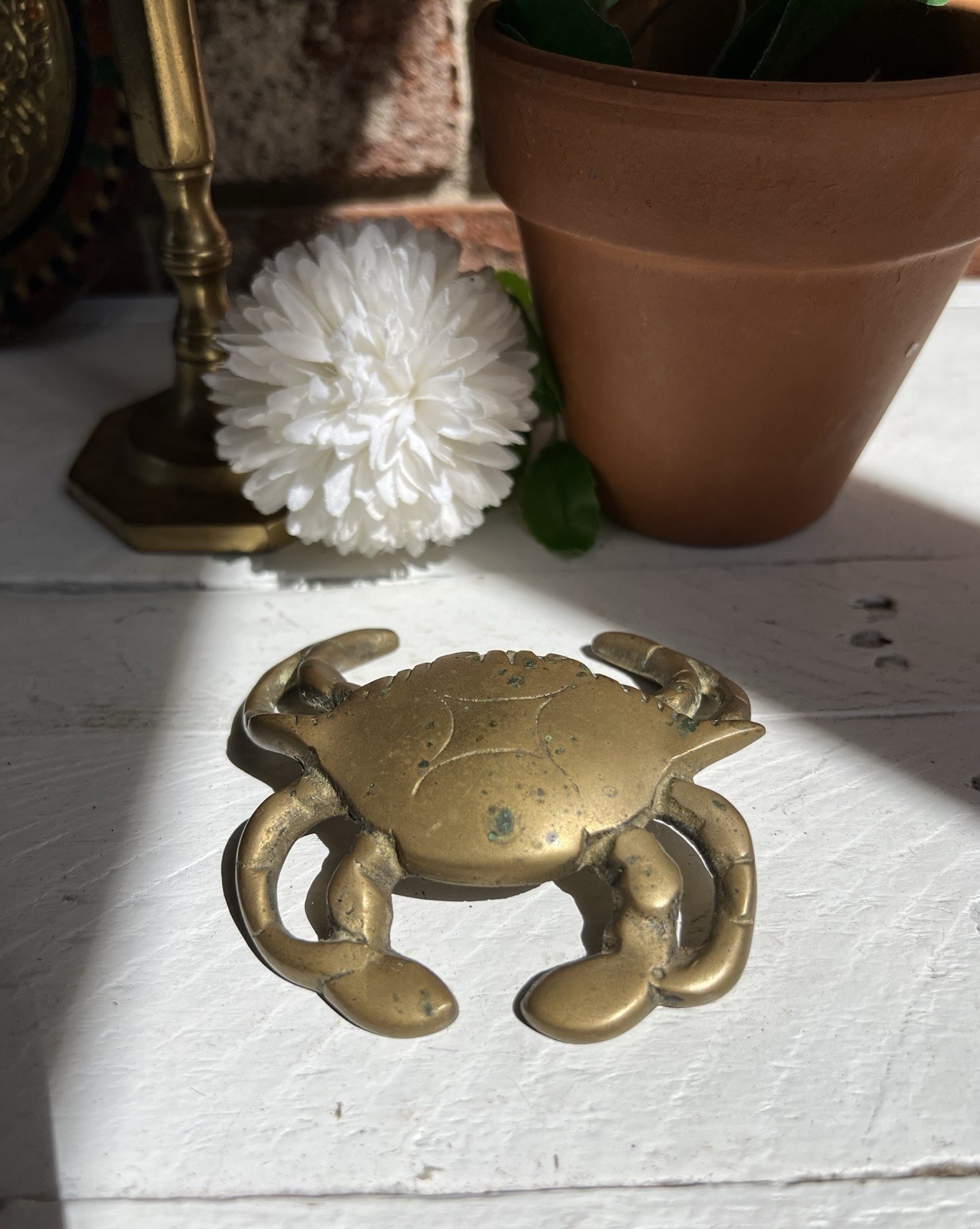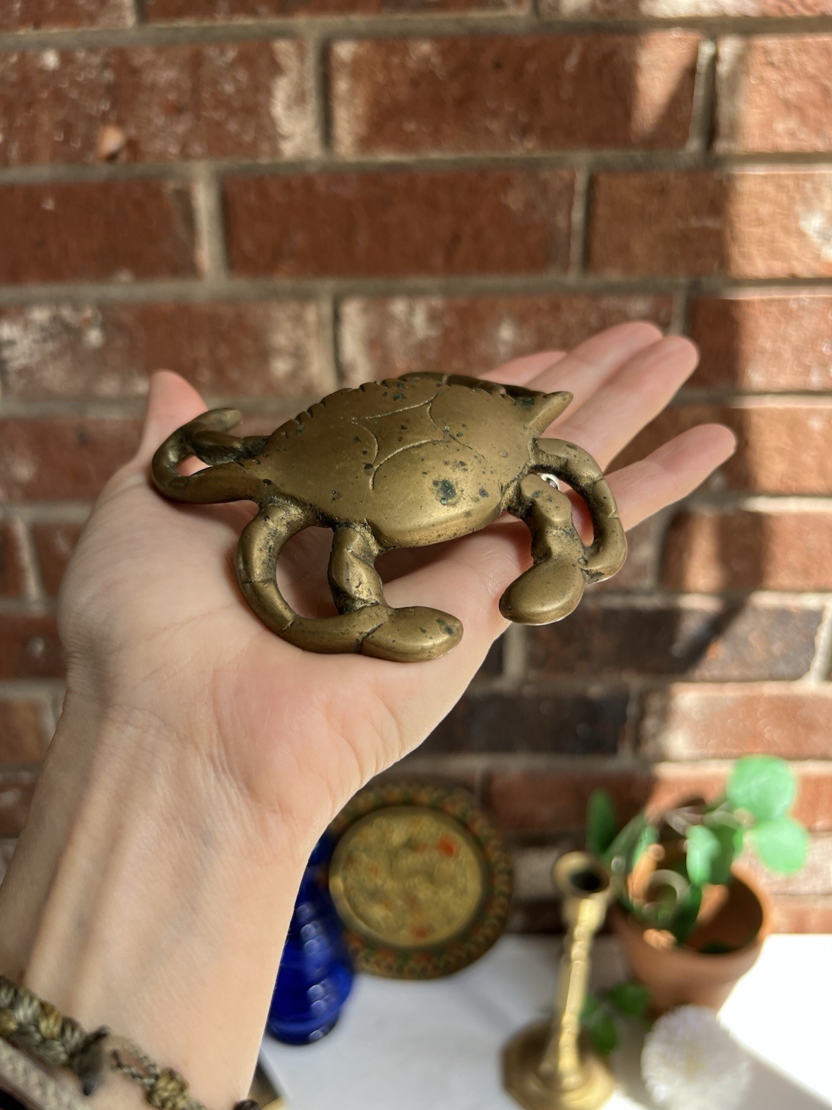 Vintage MCM Brass Crab Figurine Paperweight Ocean Nautical Sea Coastal 3 1/2