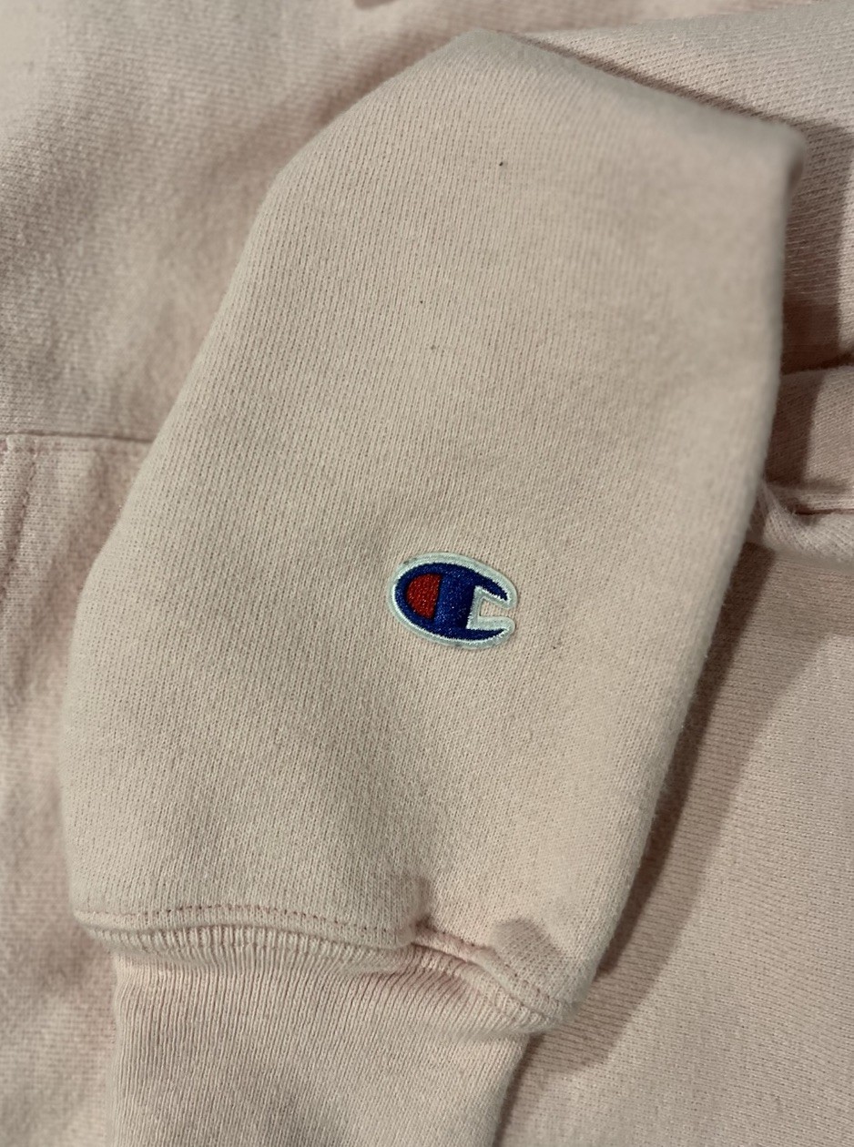 как выглядит Champion Reverse Weave Hooded Sweatshirt Light Pink Women s Size Large фото