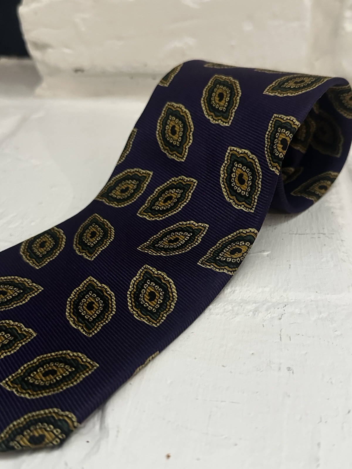 как выглядит Gitman Bros. Mens Neck Tie Purple Background With Green And Yellow Made In USA фото