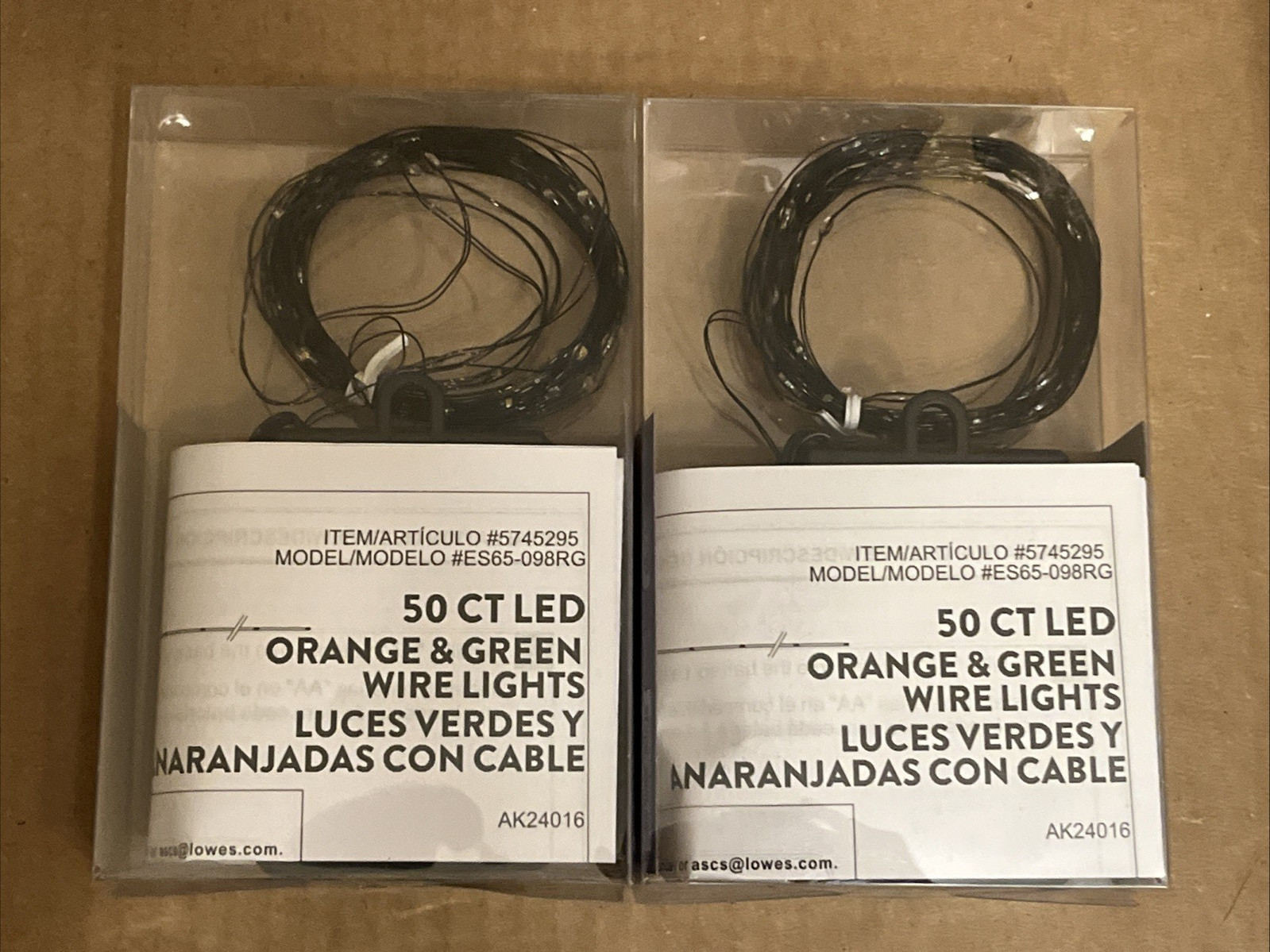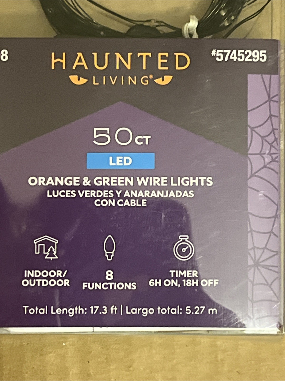 2 Boxes Haunted Living LED Green / Orange Spider Halloween Light String Battery