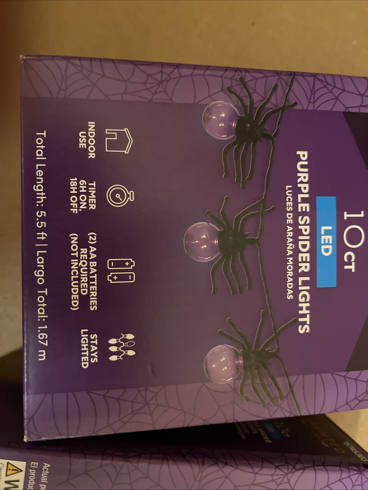 как выглядит 2 Boxes Haunted Living LED Purple Spider Halloween Light String Battery фото