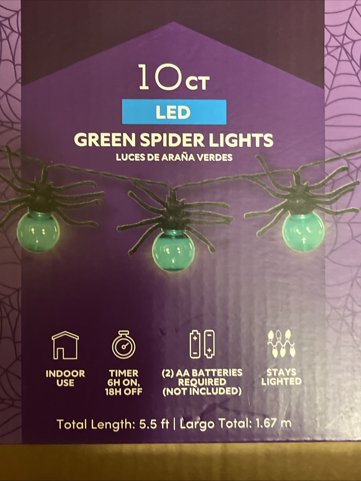 2 Boxes Haunted Living LED Green Purple Spider Halloween Light String Battery