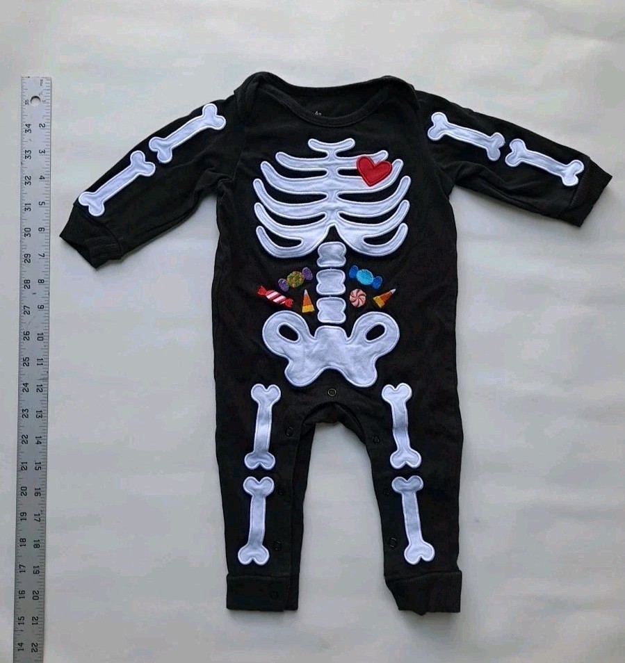 Halloween One Piece Outfit Infant 6 Months Black Skeleton Baby Long Sleeve