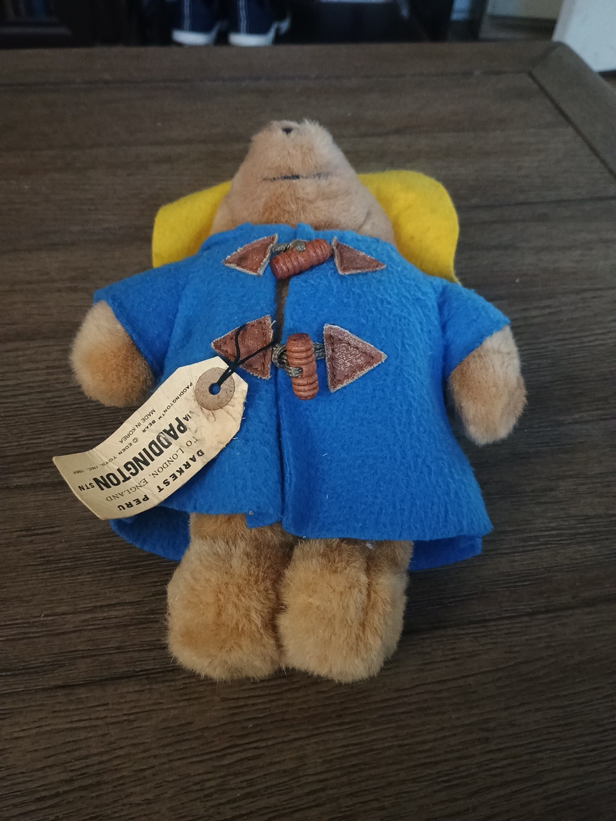 как выглядит Vintage Eden Paddington Bear Plush Wind Up Lullaby Blue Coat Yellow Hat 10" Tag фото