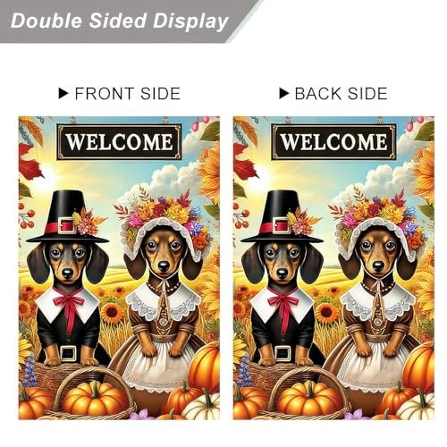 Thanksgiving Fall Garden Flag 12x18 Inch Welcome Flag Double Sided Dachshund