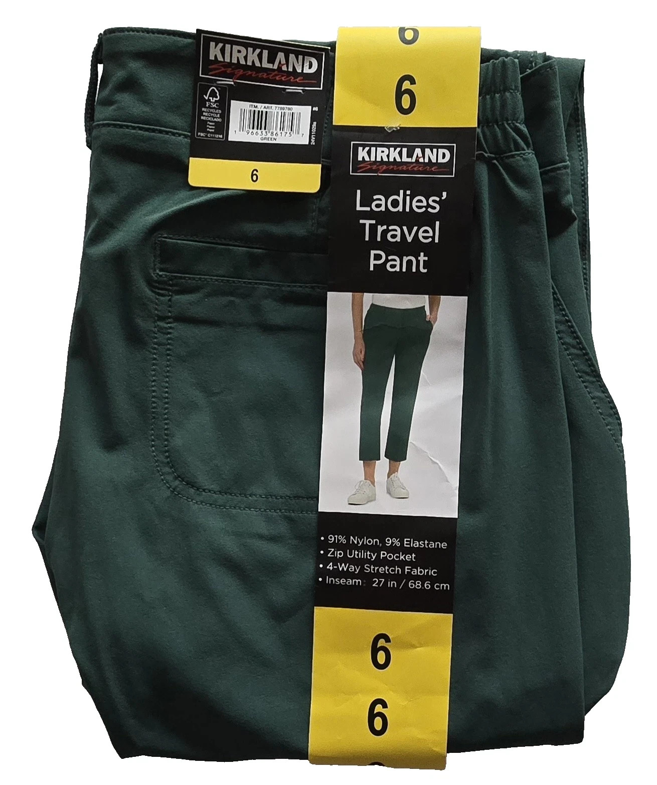 New Kirkland Signature Women Ankle Travel Pant 7789780 Green Size 06