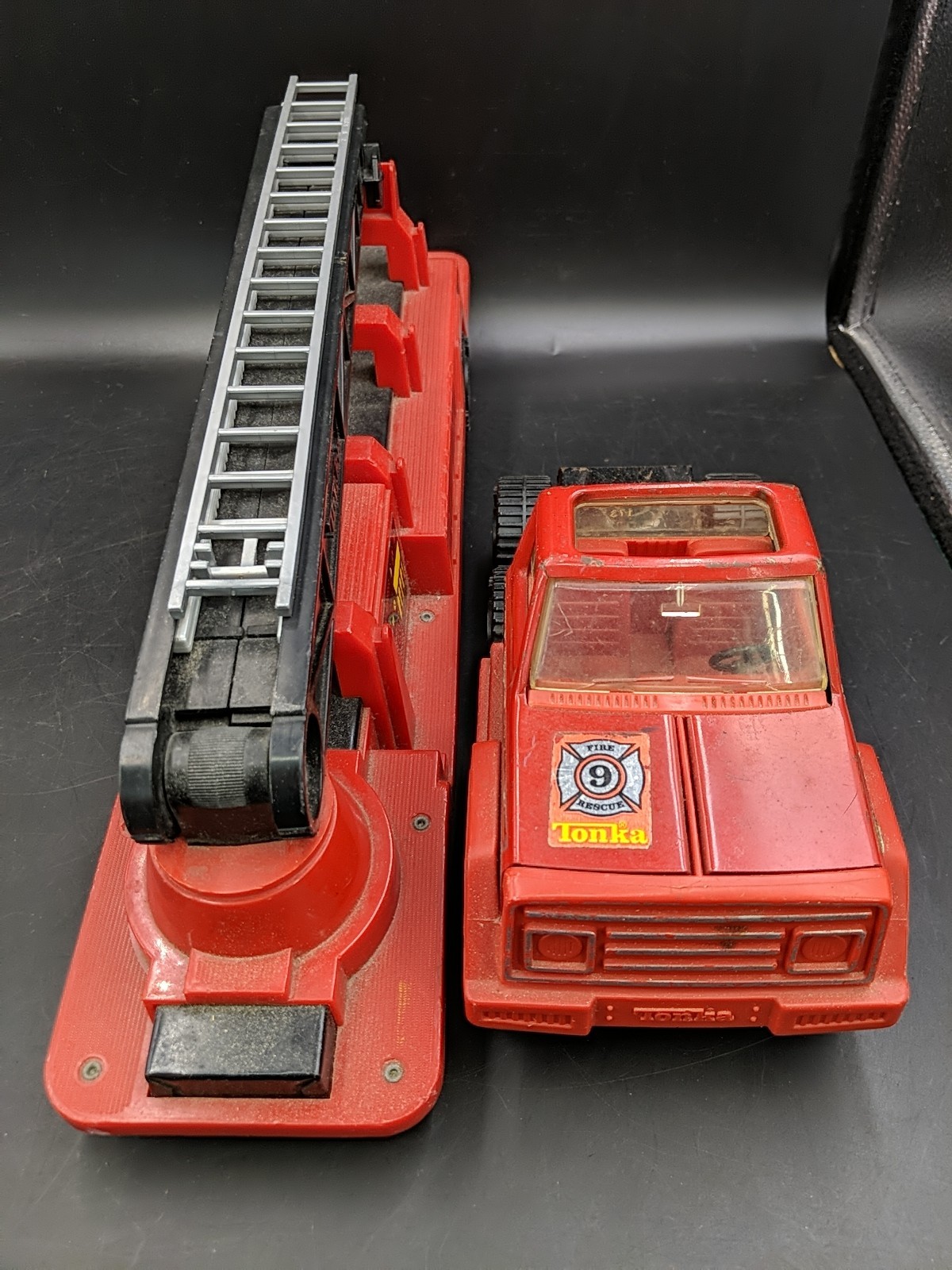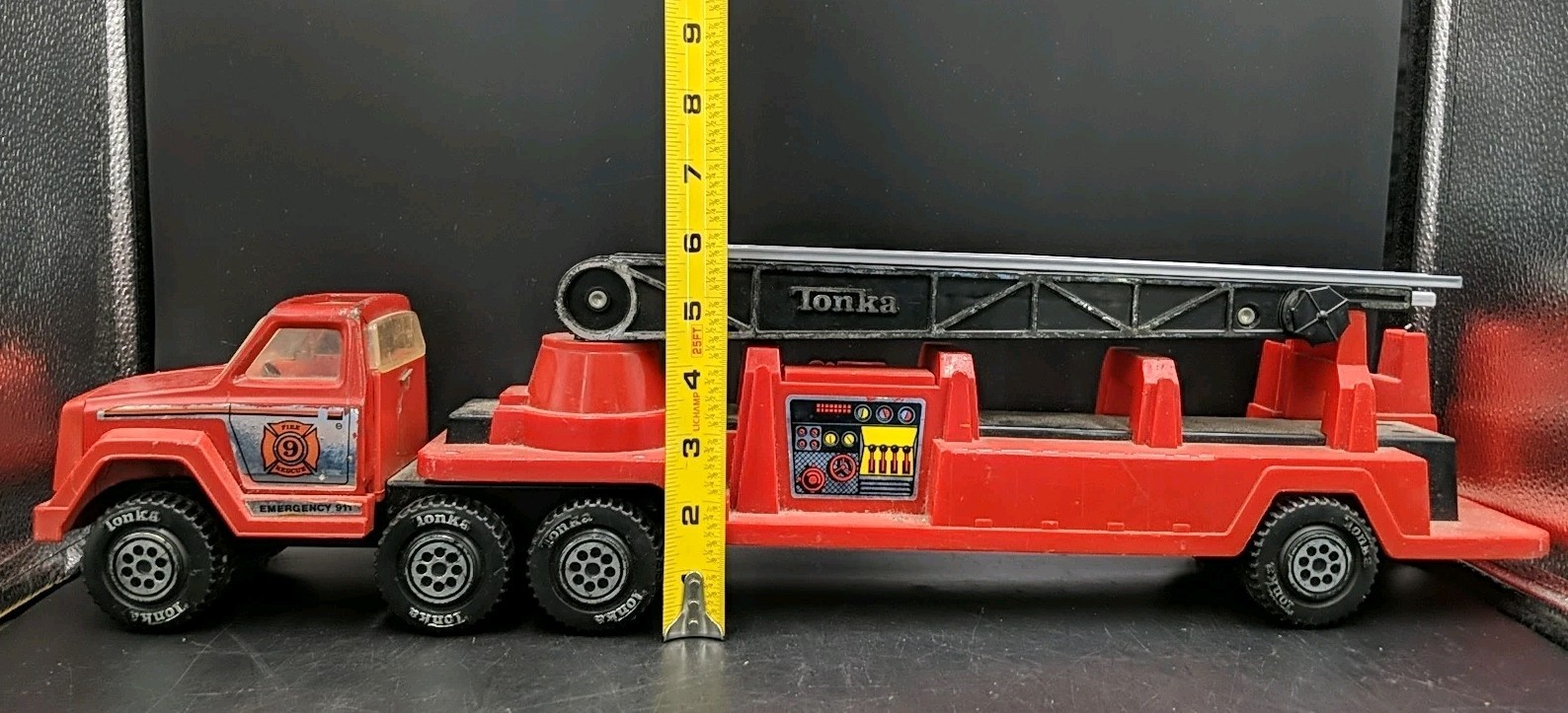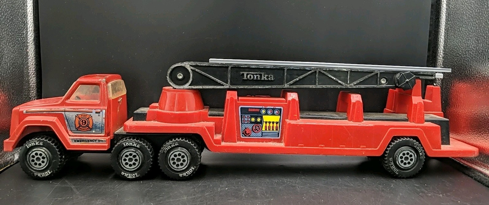 VINTAGE 1978 TONKA LARGE PRESSED STEEL AND PLASTIC LADDER FIRE TRUCK 24 LONG