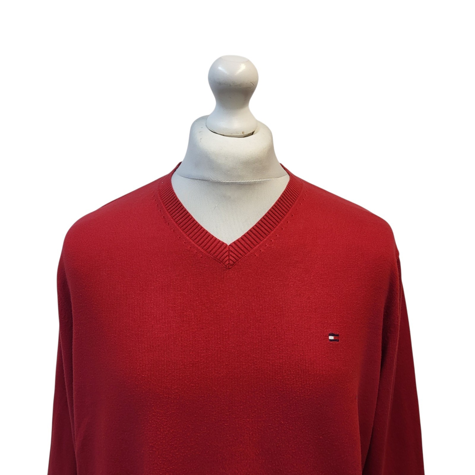Tommy Hilfiger Jumper Red V-Neck UK Men's Size L FF638