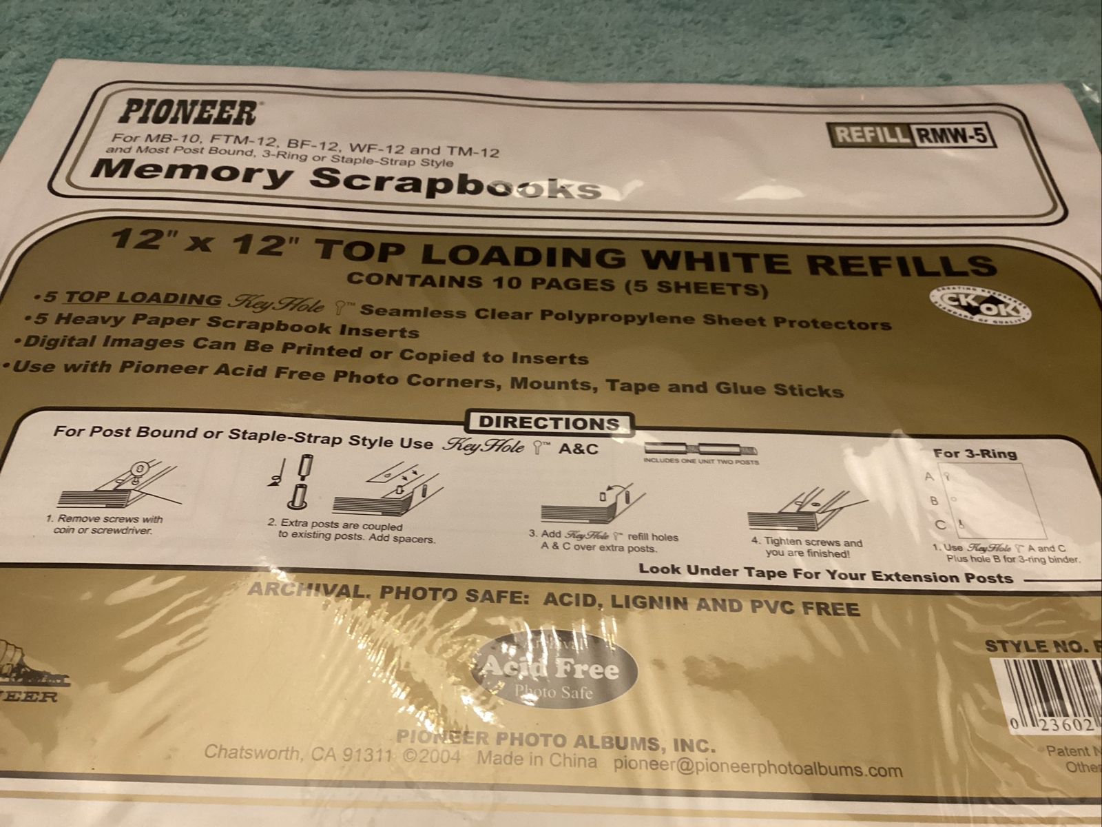 Pioneer 12 x 12 White Pages Scrapbooking Albums Post Strap 3-ring- m 5 sheets