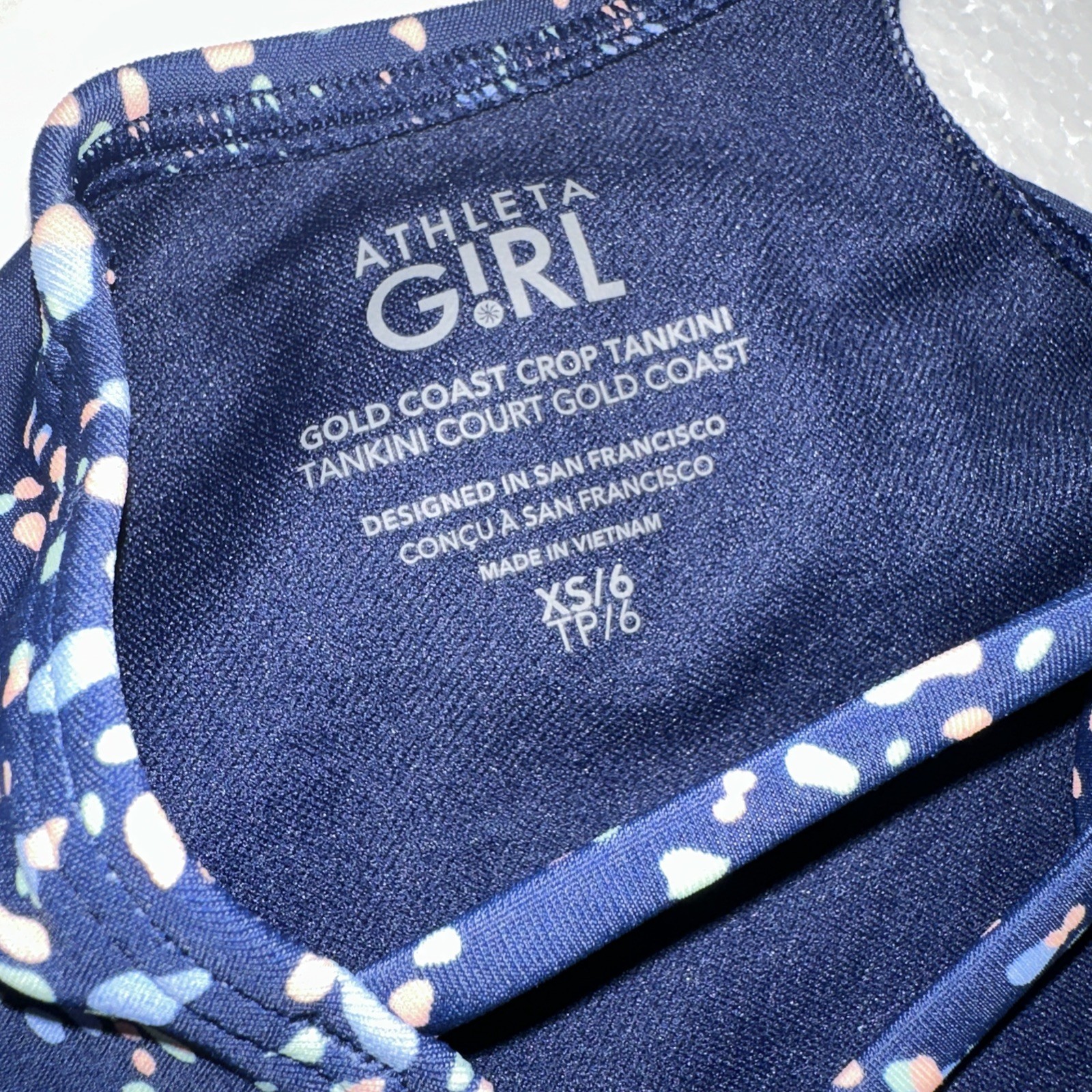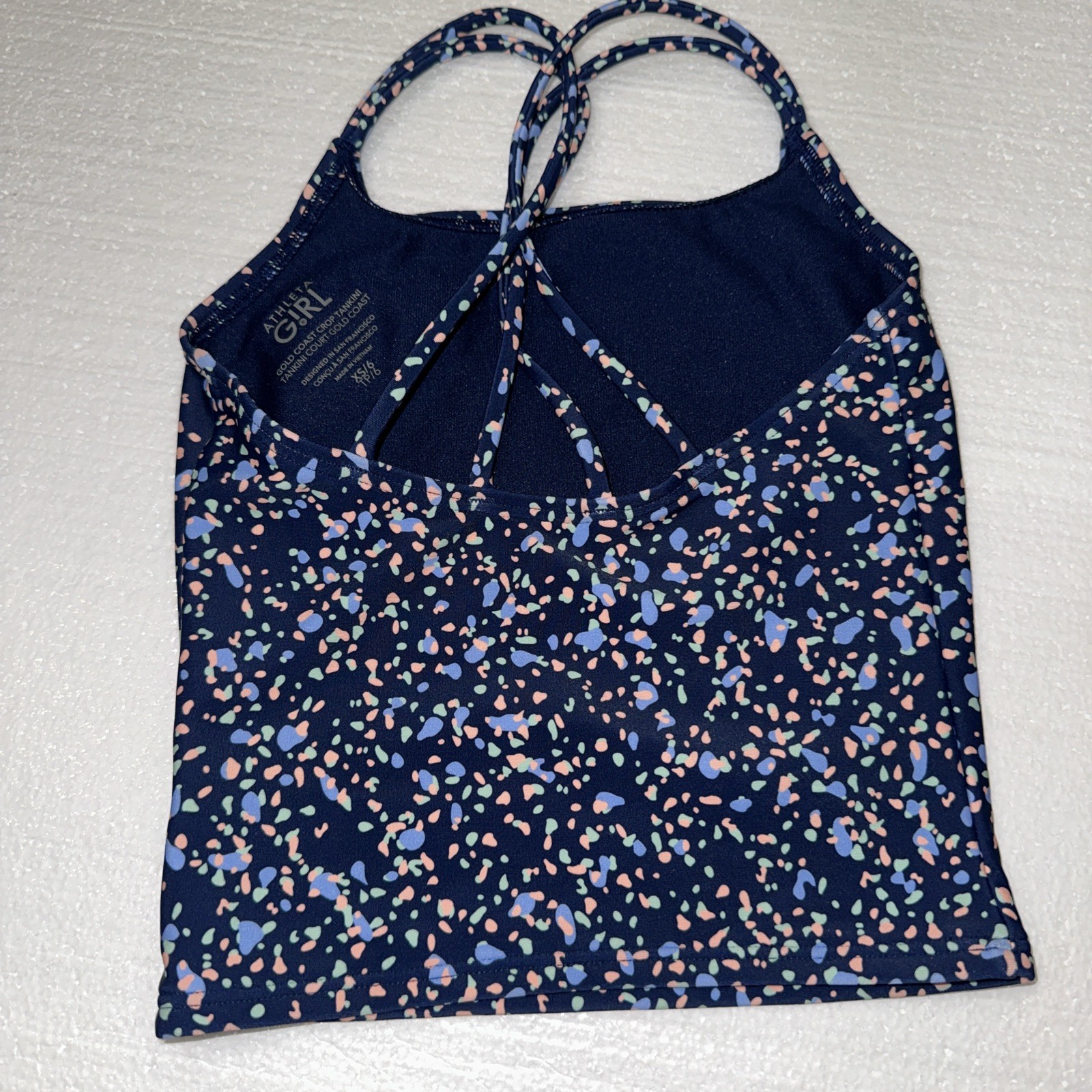 Athleta Girl Gold Coast Crop Tankini Swim Top Navy / Peach / Green Size XS/6
