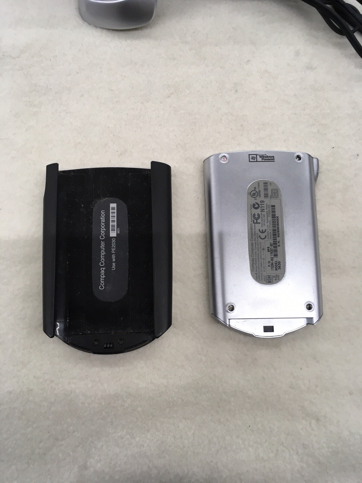 как выглядит 2 Compaq Pocket PC H3600 Model 3630 With Charging Station Compaq 56K Modem Parts фото