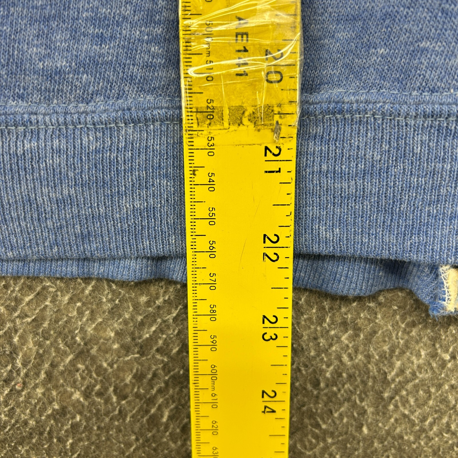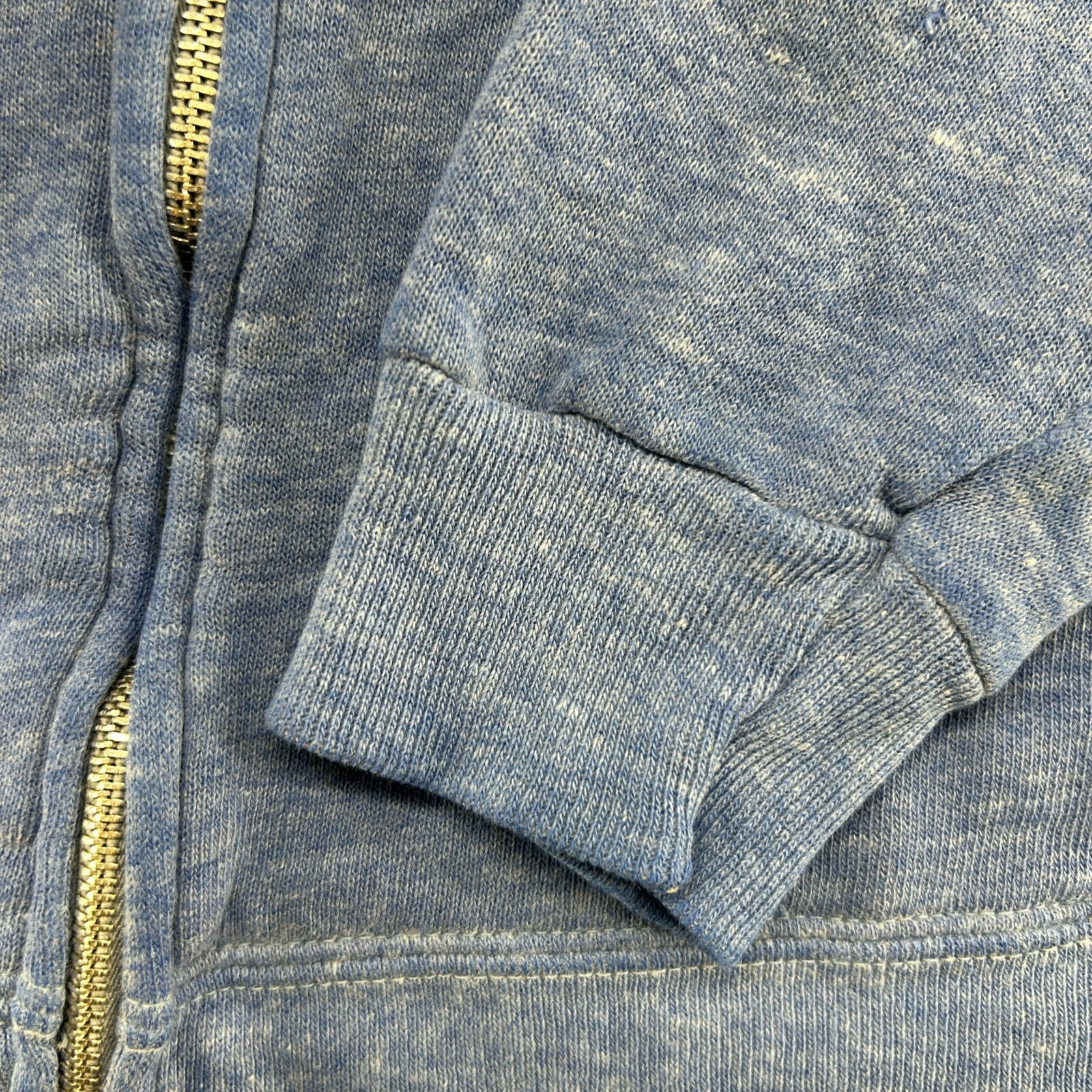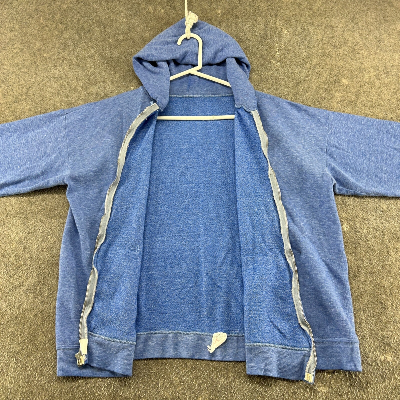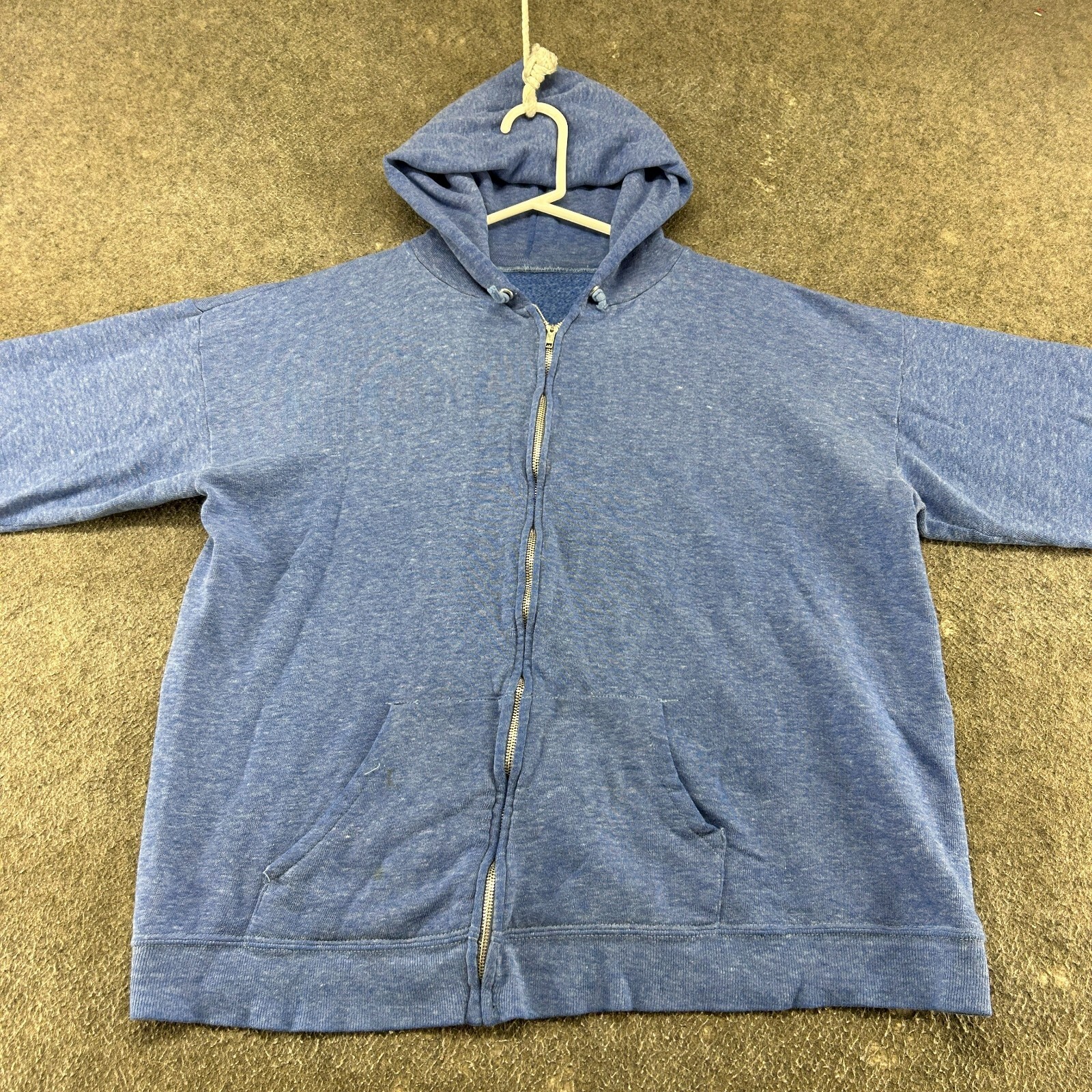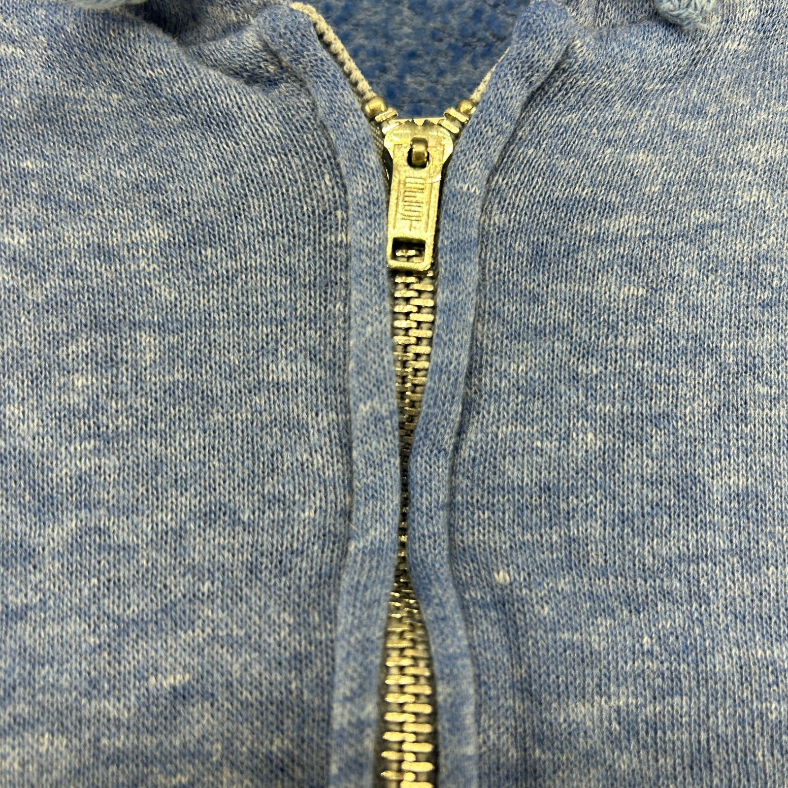 VINTAGE 70s Full Zip Hoodie Mens L Blue Sweatshirt Soft Blank Sun Faded Cotton
