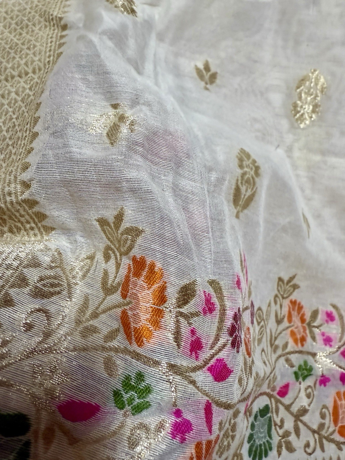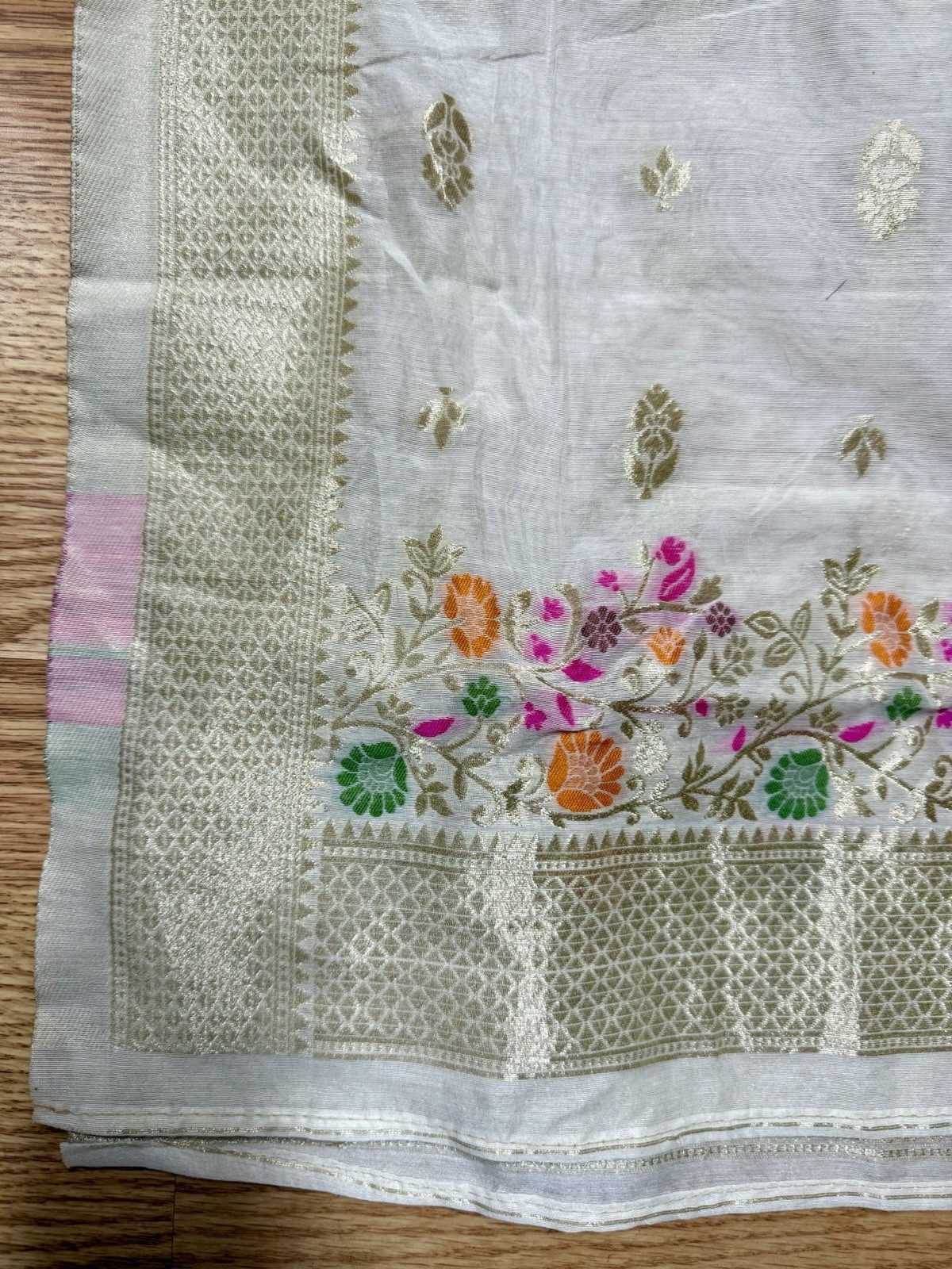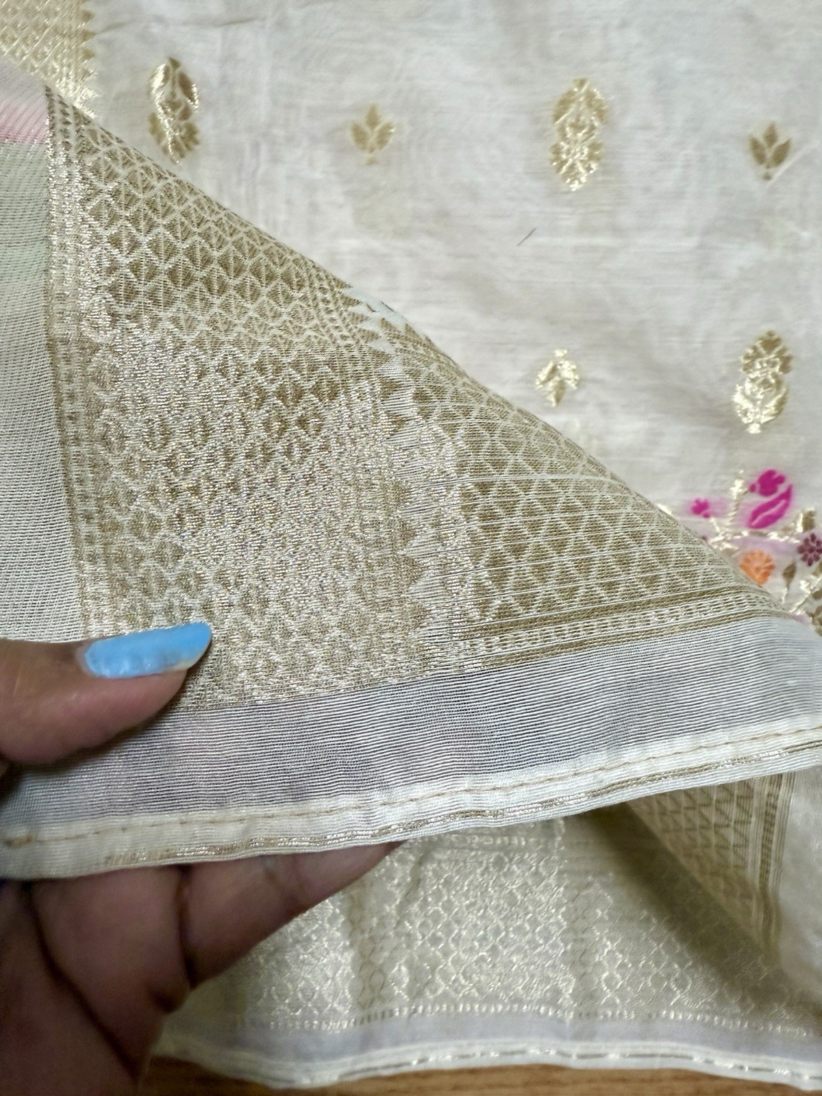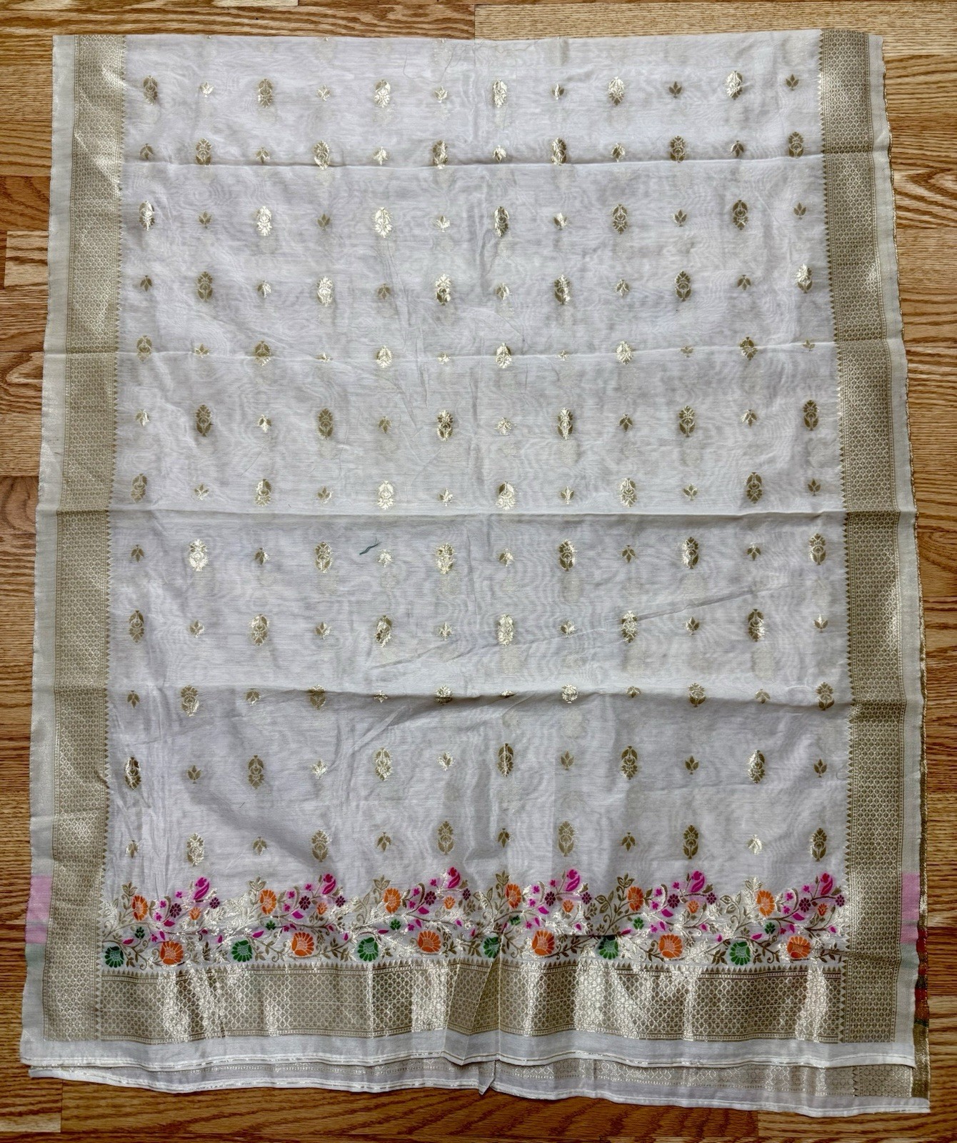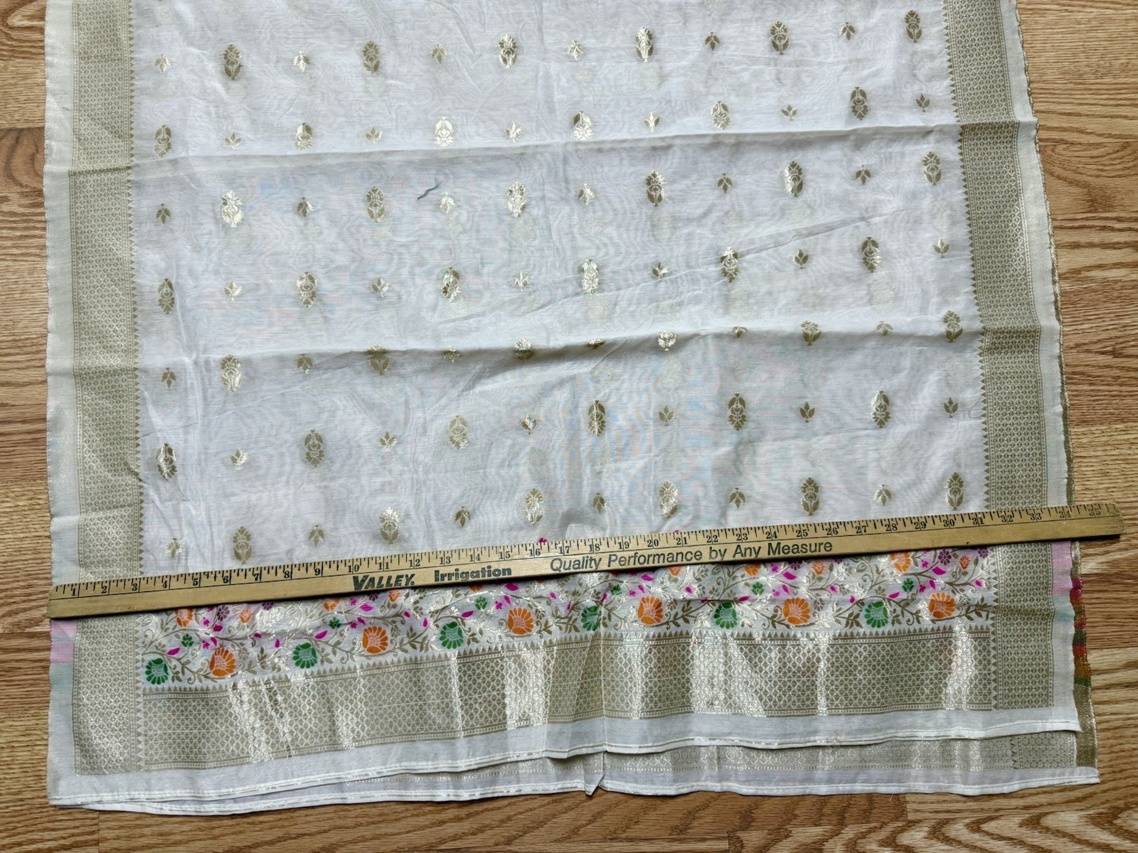 Ivory GOLDEN butti India BANARSI chanderi Dupatta Wrap Scarf Stole Chunri shawl