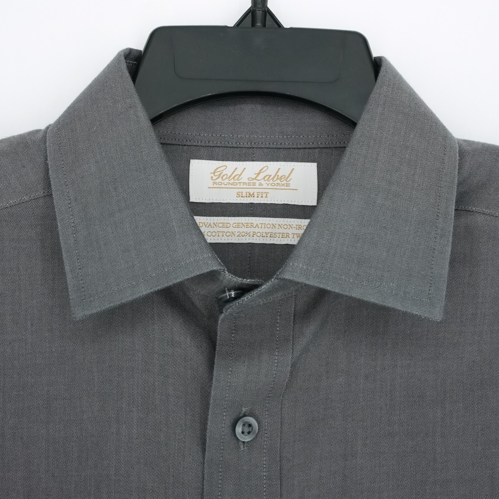 как выглядит Roundtree Yorke Gold Label Dress Shirt 15"-32" SLIM FIT Gray Non-Iron NWT фото