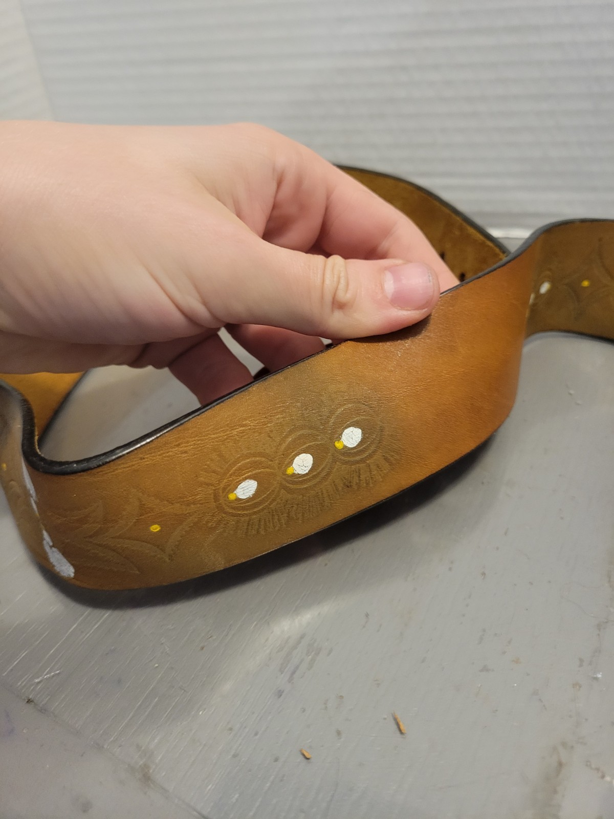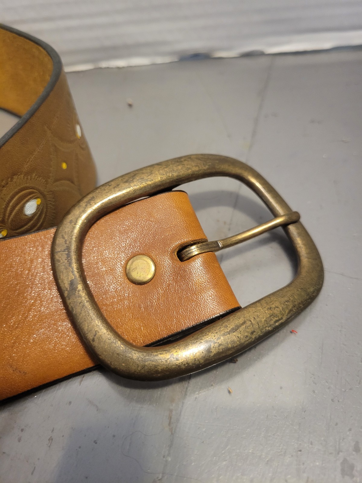 как выглядит Vintage Hand Painted Tooled Hippie Boho Flower Belt W Buckle фото