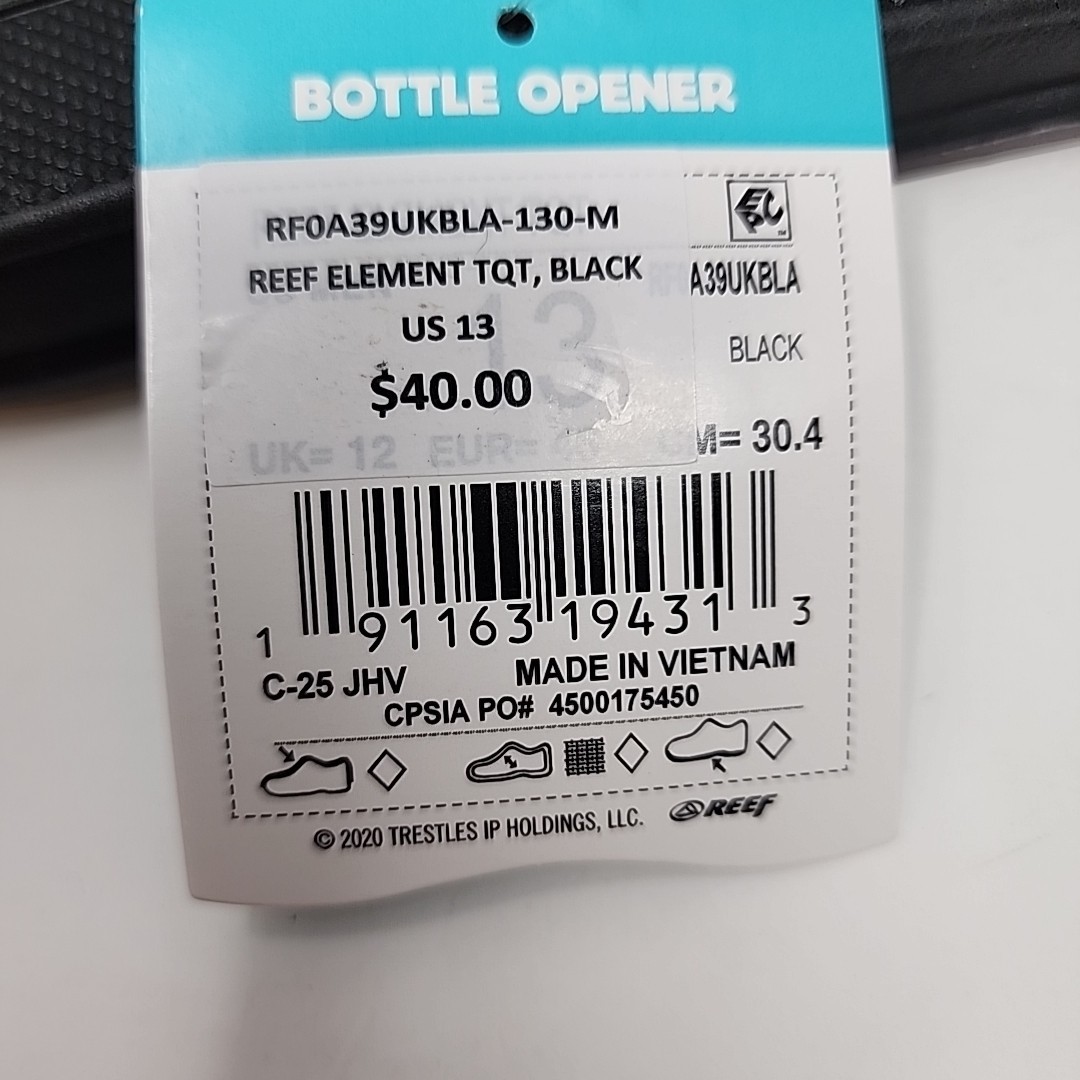 как выглядит Reef Element TQT Sandals Black Thong Flip Flop Bottle Opener Mens Size 13 NWT фото