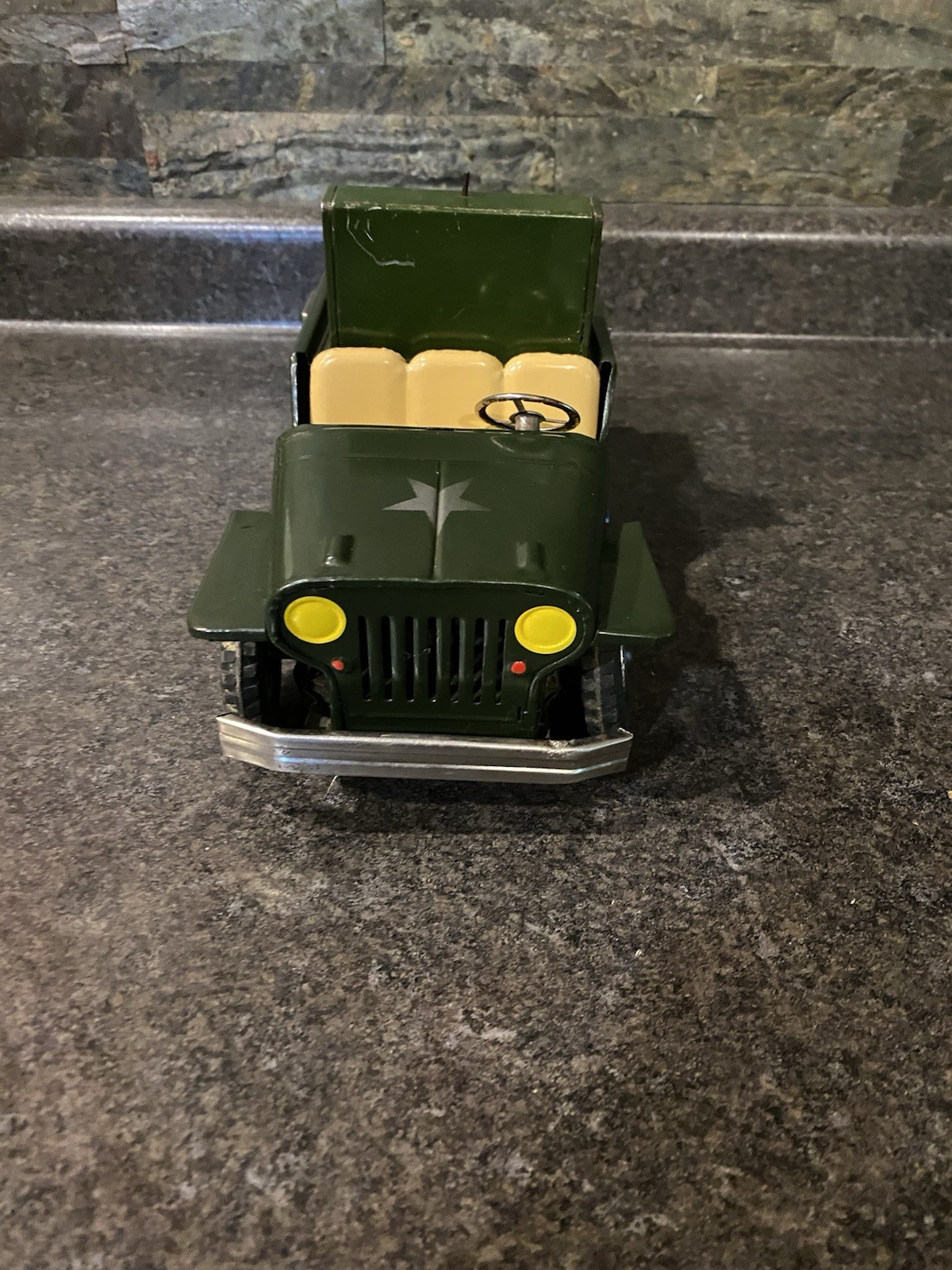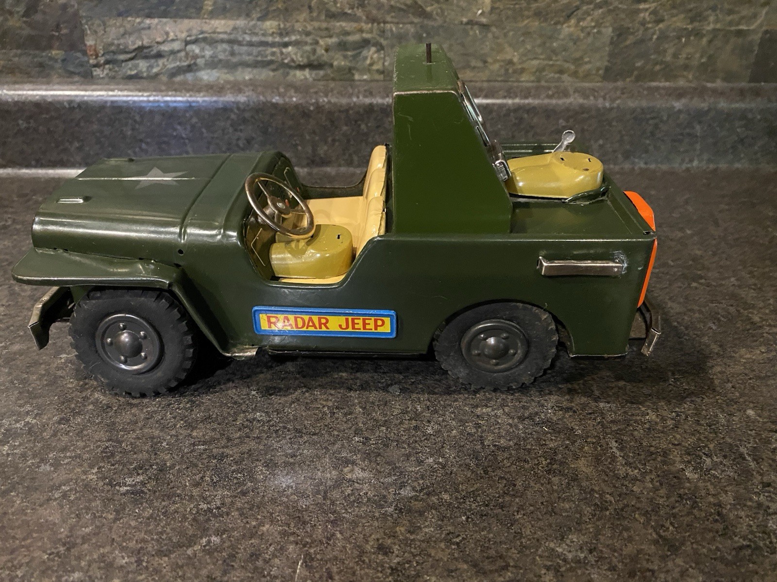 Vintage Tin Toy US Army Radar Jeep Made In Japan Non Working As-Is