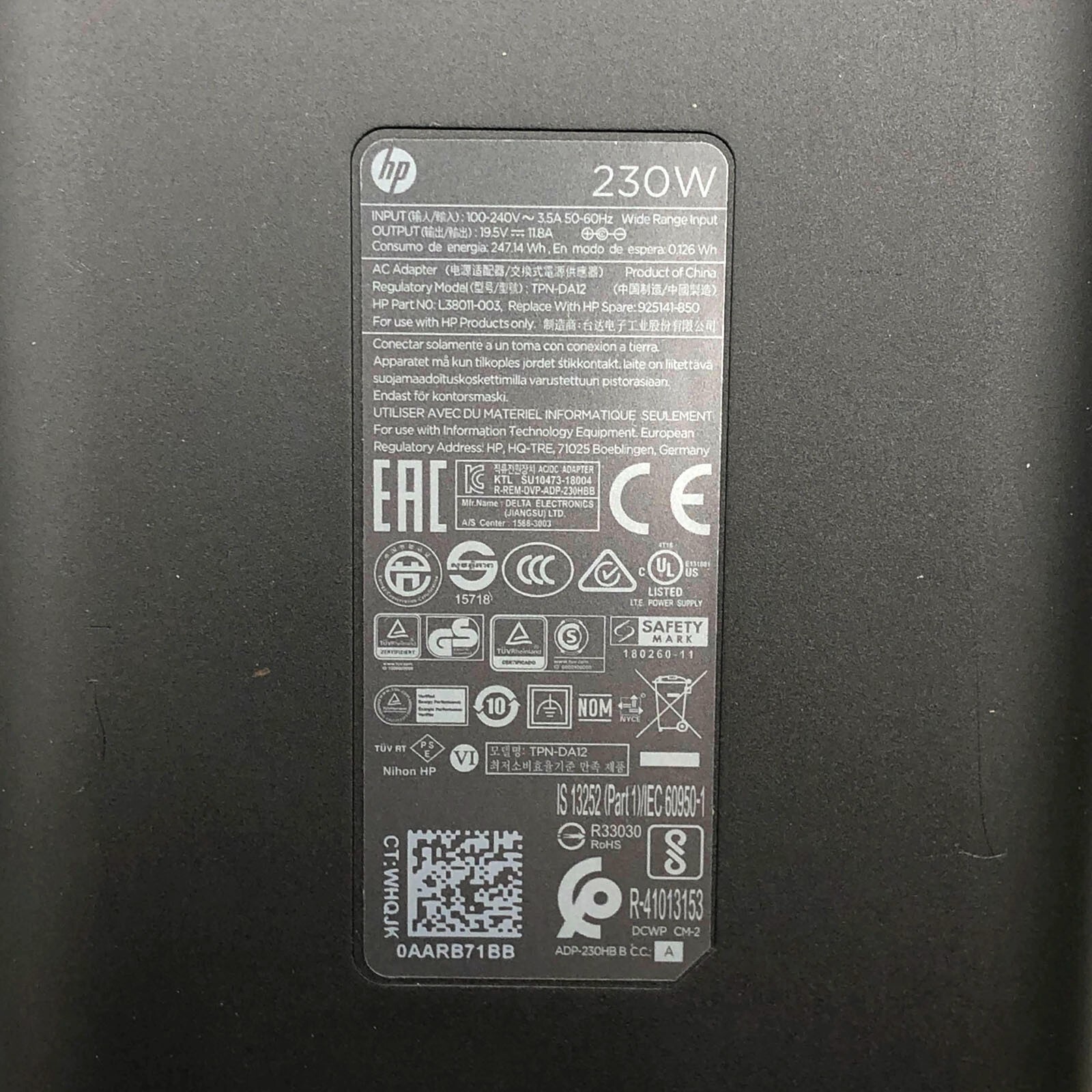 Original Power Supply, Connector / Tip : 7.4 x 5.0 mm, 27-B200NC 4JY37EA, 27-B200NH 4MZ35EA, 27-B200NK 4GY54EA, 27-B200NL 4UH70EA, 27-B200NP 4RQ29EA, 27-B200NS 4DU30EA, 27-B200NV 4XD90EA, 27-B200UR 4JQ63EA, 27-B201NJ 4CN04EA, 27-B201NS 4DU73EA, 27-B201NV 4XF34EA, 27-B201UR 4JQ62EA, 27-B203NS 4JS33EA, 27-B203UR 4UB65EA, 27-B204NX 4DV44EA, 27-B204UR 4UB83EA, 27-B205NX 4DV45EA, 27-B205UR 4UD77EA, 27-B206NX 4DV46EA, 27-B206UR 4UG85EA, 27-B207NX 4KJ40EA, 27-B208NA 4RT16EA, 27-B211NP 4RT18EA, 27-B220NB 4MQ52EA, 27-B239NG 4RR86EA, 27-B250NZ 4BY75EA, 27-B255NG 4KD55EA, 27-B259NG 4DV47EA, 27-B270NZ 4CA13EA, 27-B255QD X6C18AA, 27-b214 TPC-T008-27 3LA04AA#ABA, 27-b245se X6C17AA X6C17AAR#ABA, Power Cord Adaptor Charger, 19.5V 11.8A, AC Cable Plug, 27-B021, 27-b011, 27-B114, 27-b209 27-b255qd 27-b205na |