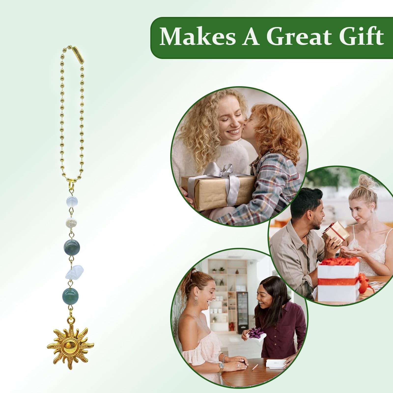 Sun Hanging Car Charm,Green and Gold Rear View Mirror Accessories Cute Boho D...