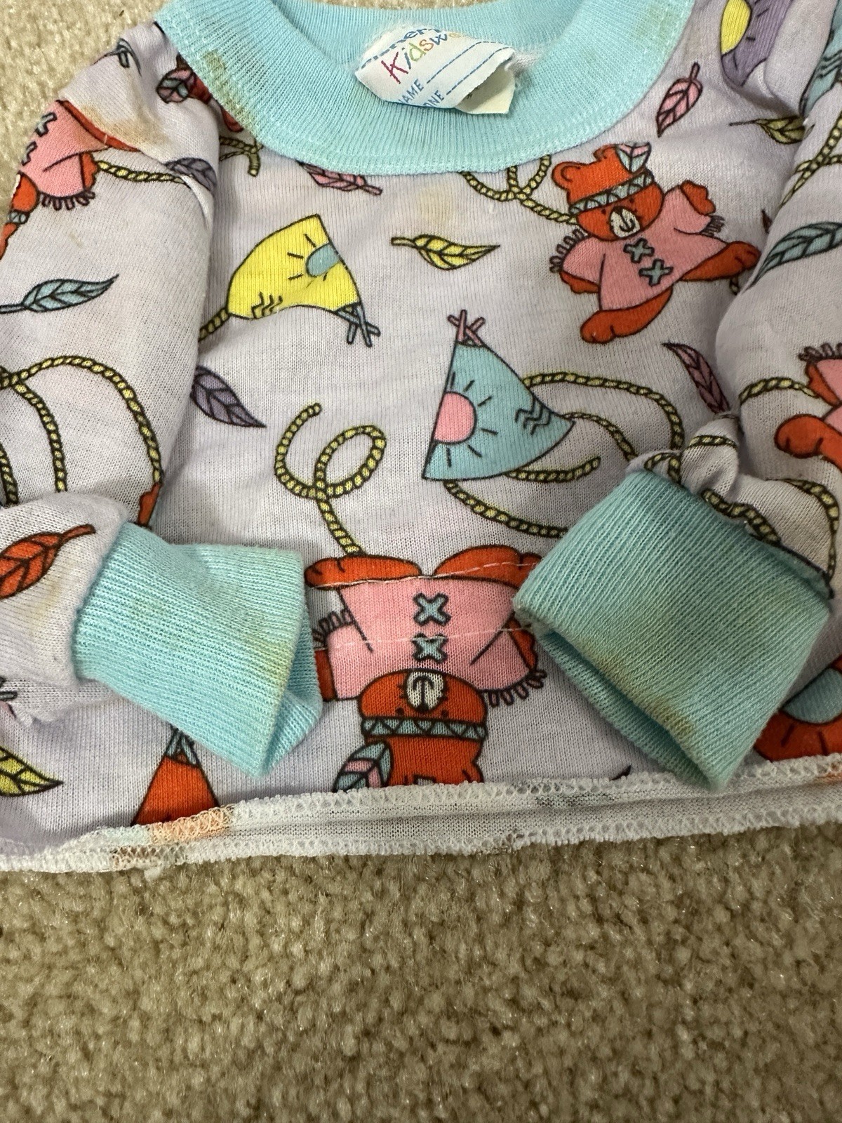 как выглядит Vintage Fisher Price Kids Wear Pajama Tops 9 and 18 months Bunnies Indian Bear фото