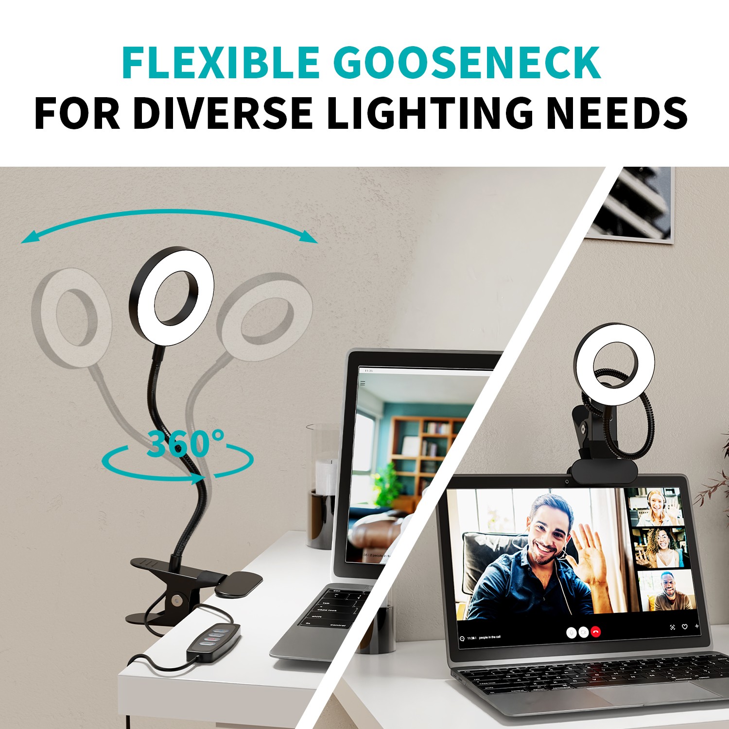 как выглядит Clip on Table Lamp Dimmable Eye-Caring Clamp Light 3 Color Modes 10 Brightness фото