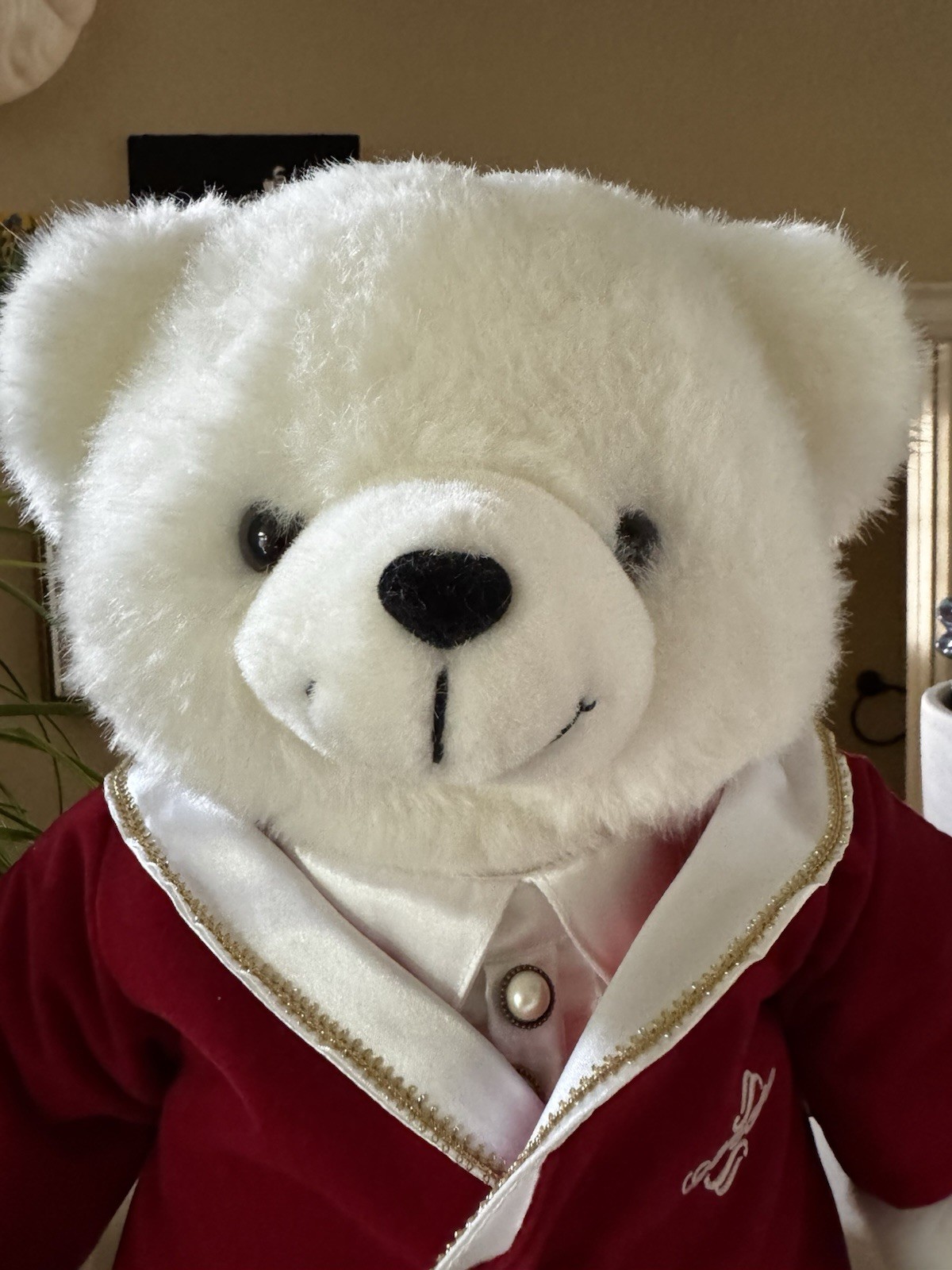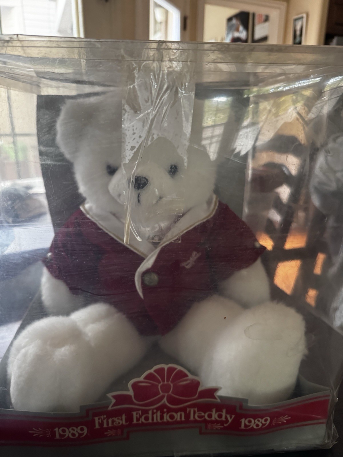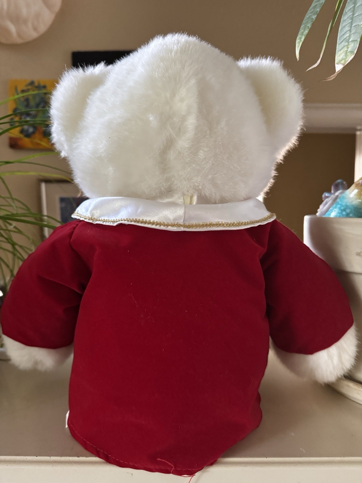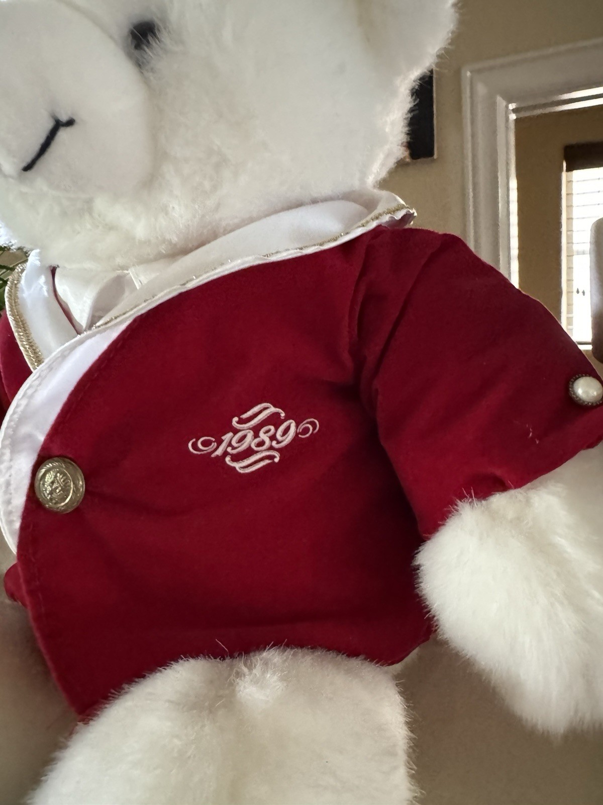 как выглядит 1989 Teddy Bear 1st Edition Christmas Dan Dee White with Red Coat Sitting 20" фото