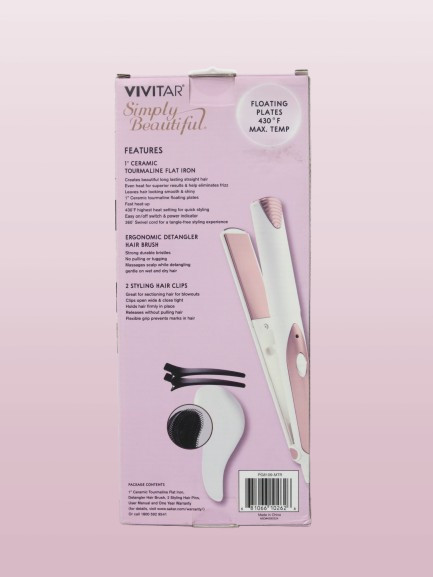 как выглядит VIVITAR CERAMIC TOURMALINE FLAT IRON PLUS 2 HAIR CLIPS фото