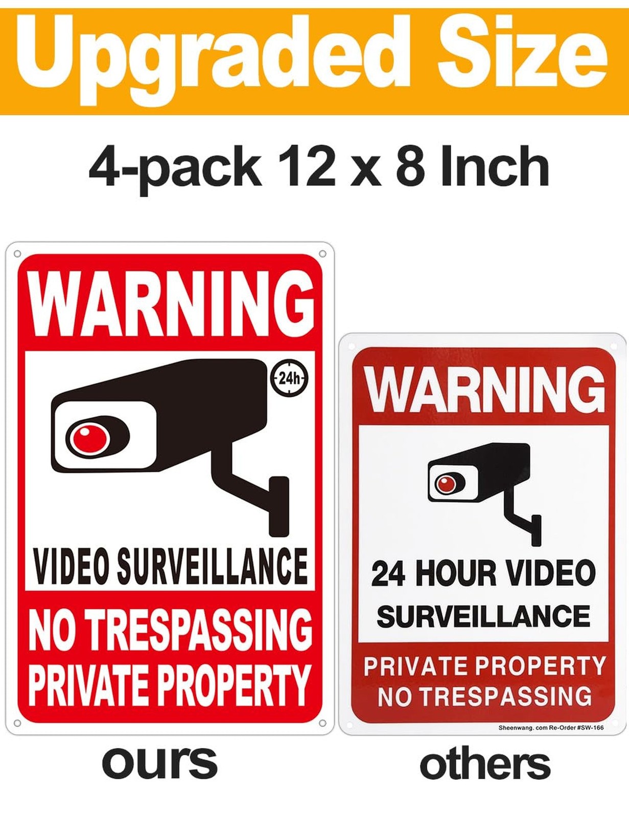4-Pack Private Property No Trespassing Signs, 12x8 Outdoor Video Surveillan...