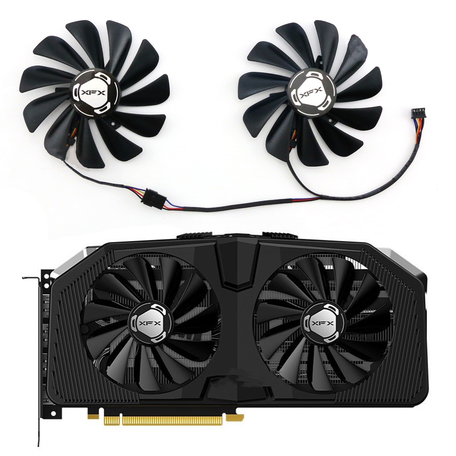 как выглядит 2PCS Graphics Card Fan Cooling Fan FDC10U12S9-C for XFX RX56700XT 5700 RX5600XT фото