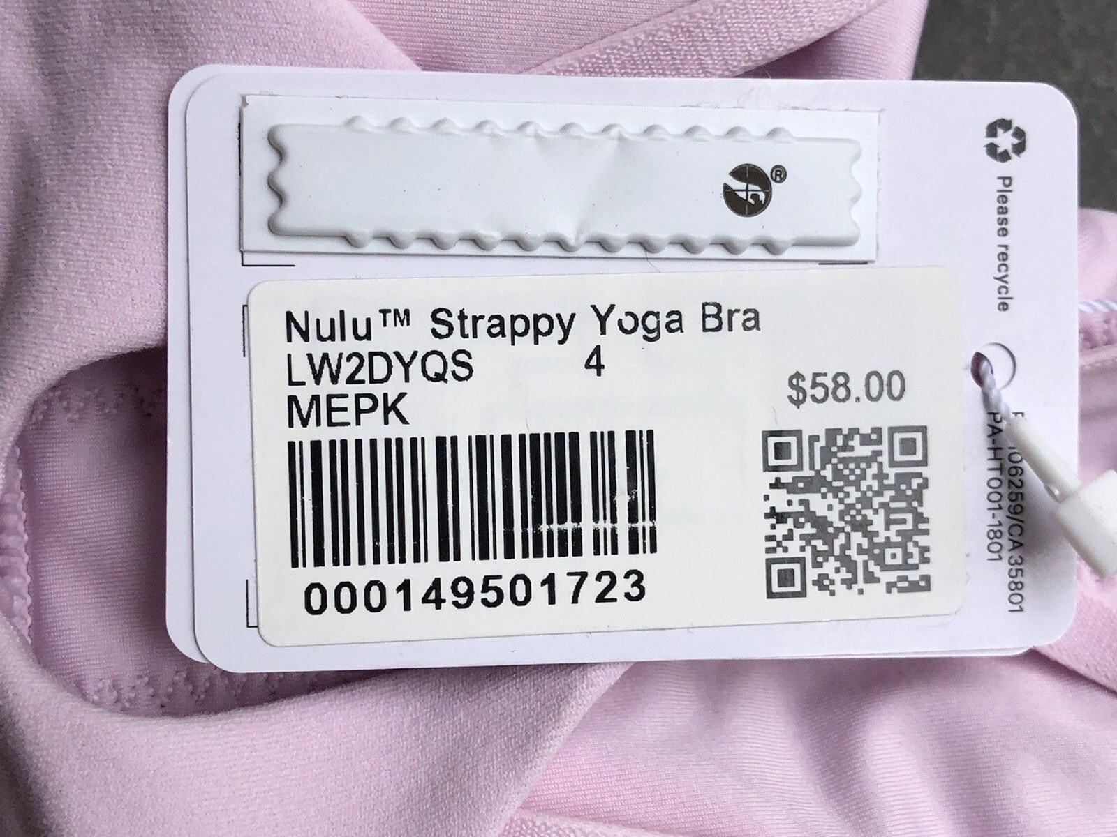 как выглядит Lululemon Nulu Strappy Yoga Bra MEPK Pale Pink Size 4 New w/ tag фото