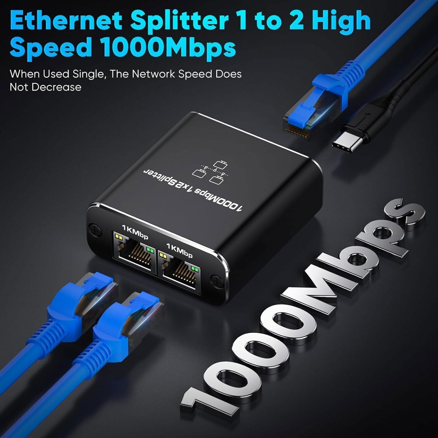 RJ45 Gigabit Ethernet Splitter 1000Mbps LAN Network Internet 1 to 2 Out Adapter