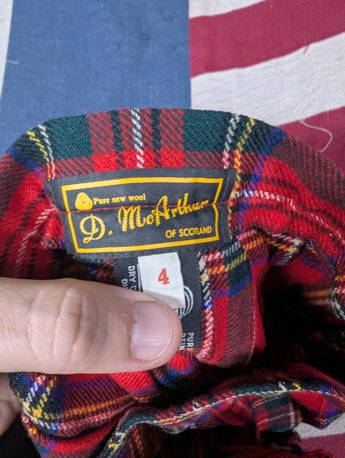 Vintage D. McArthur Of Scotland Womens Pleated Wool Skirt Kilt Size 4 Red Tartan
