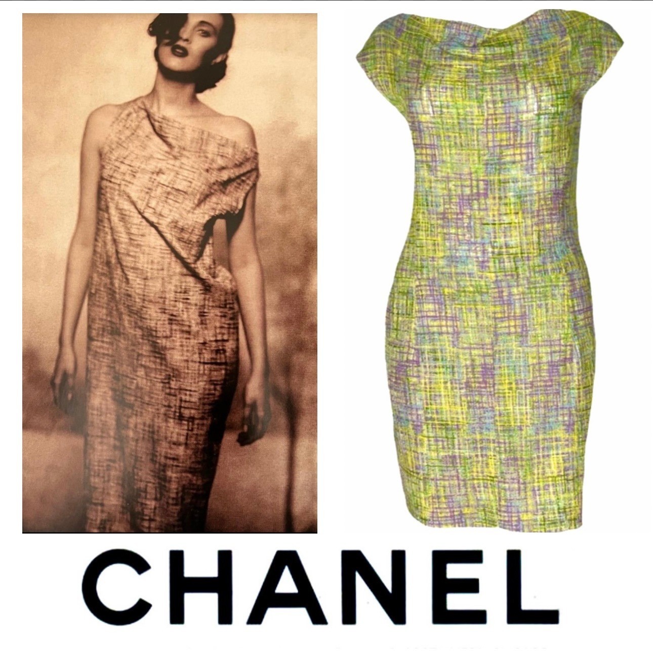 как выглядит Chanel Vintage 1998 Yellow Pink Tweed Work Party Dress 34 36 38 2 4 6 Logo S M фото
