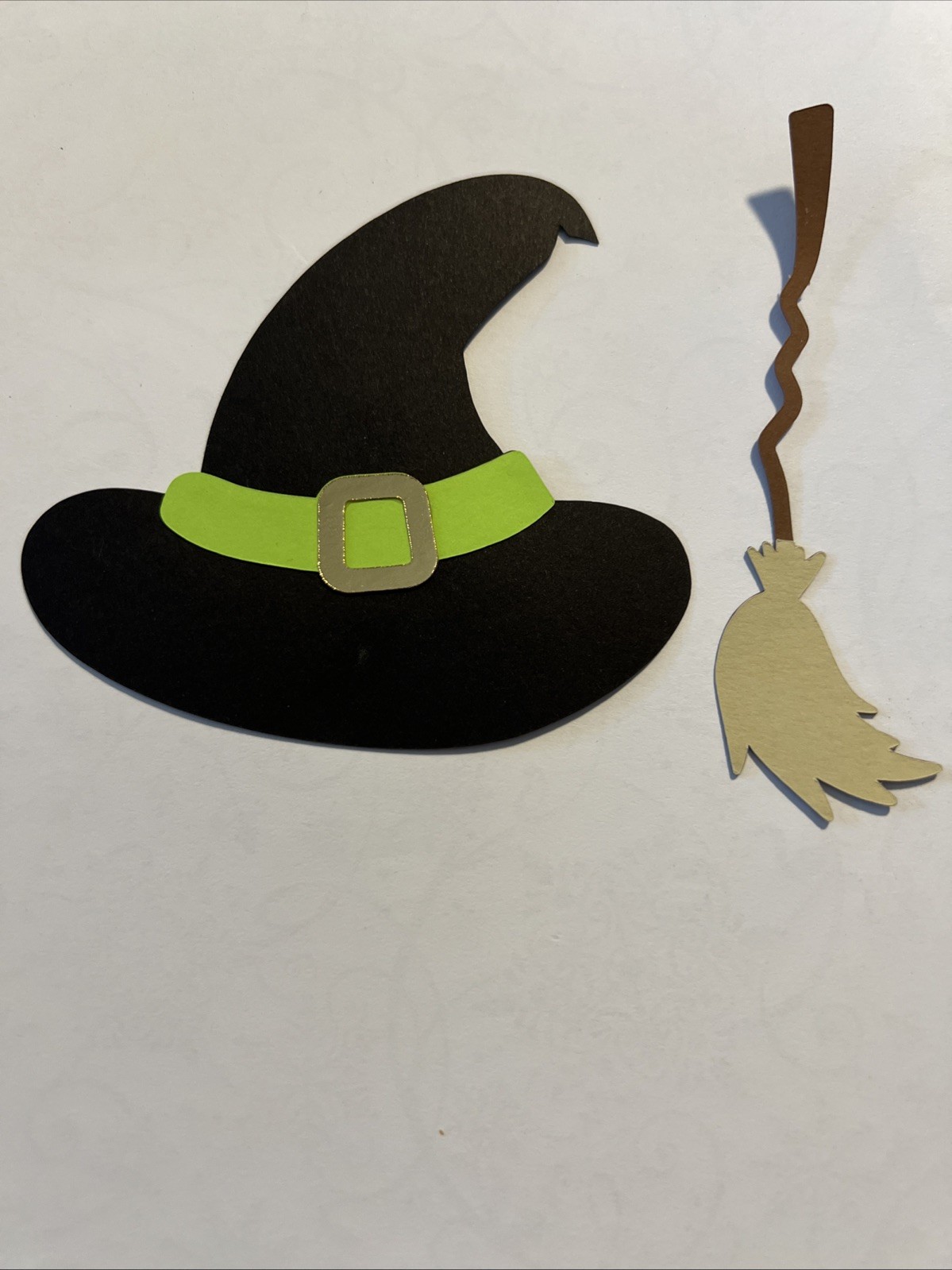 Halloween Witches Hat And Broom Paper Piece Handmade For Scrapbooking