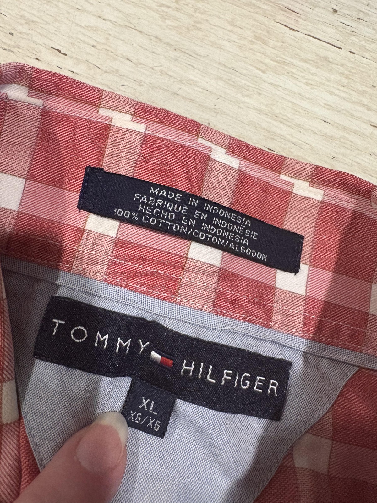 Tommy Hilfiger Shirt Mens XL Red White Gingham Plaid Button Down Long Sleeve