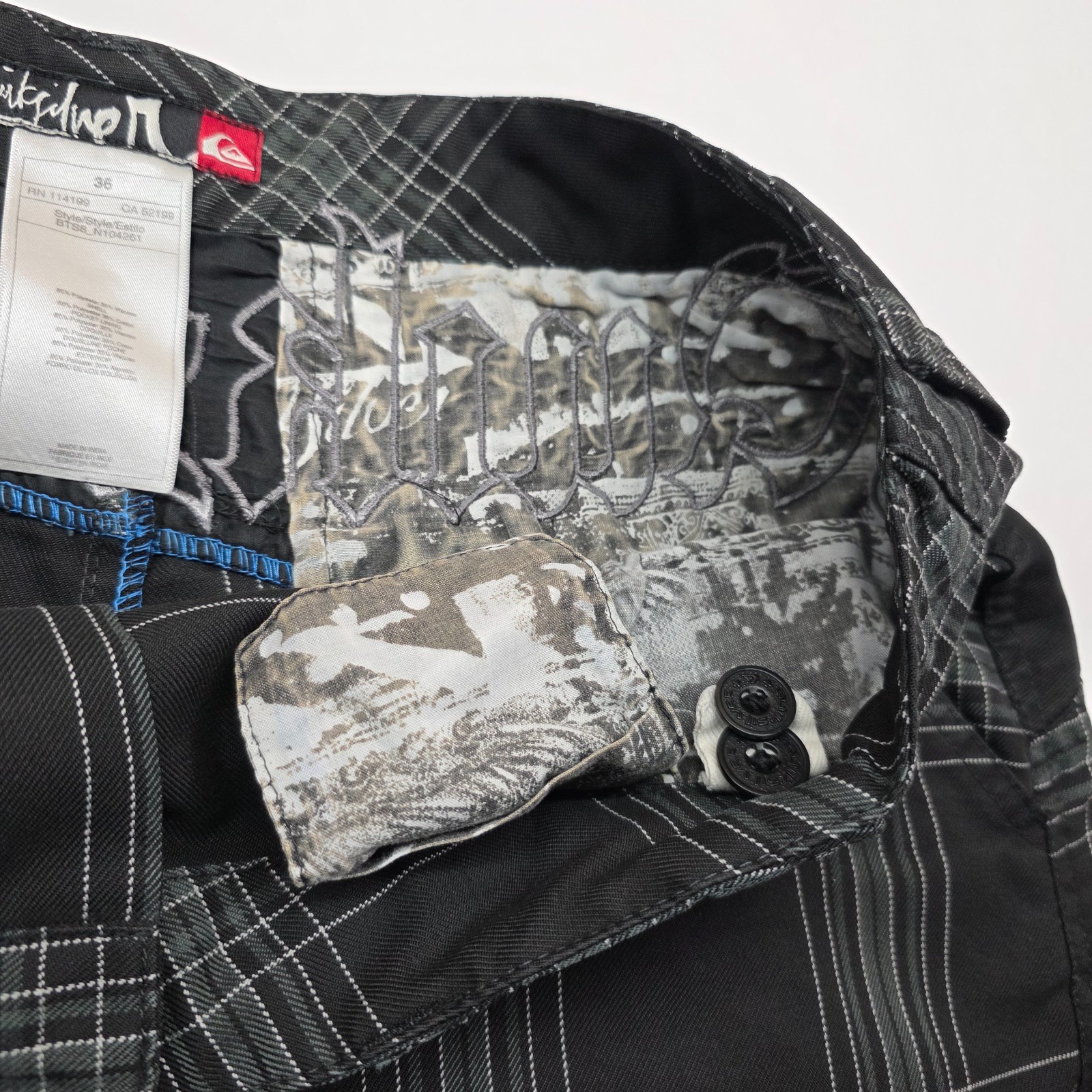 VTG Quicksilver Plaid Shorts Men Size 36 Black Gray Spell Out Y2K Grunge Skate