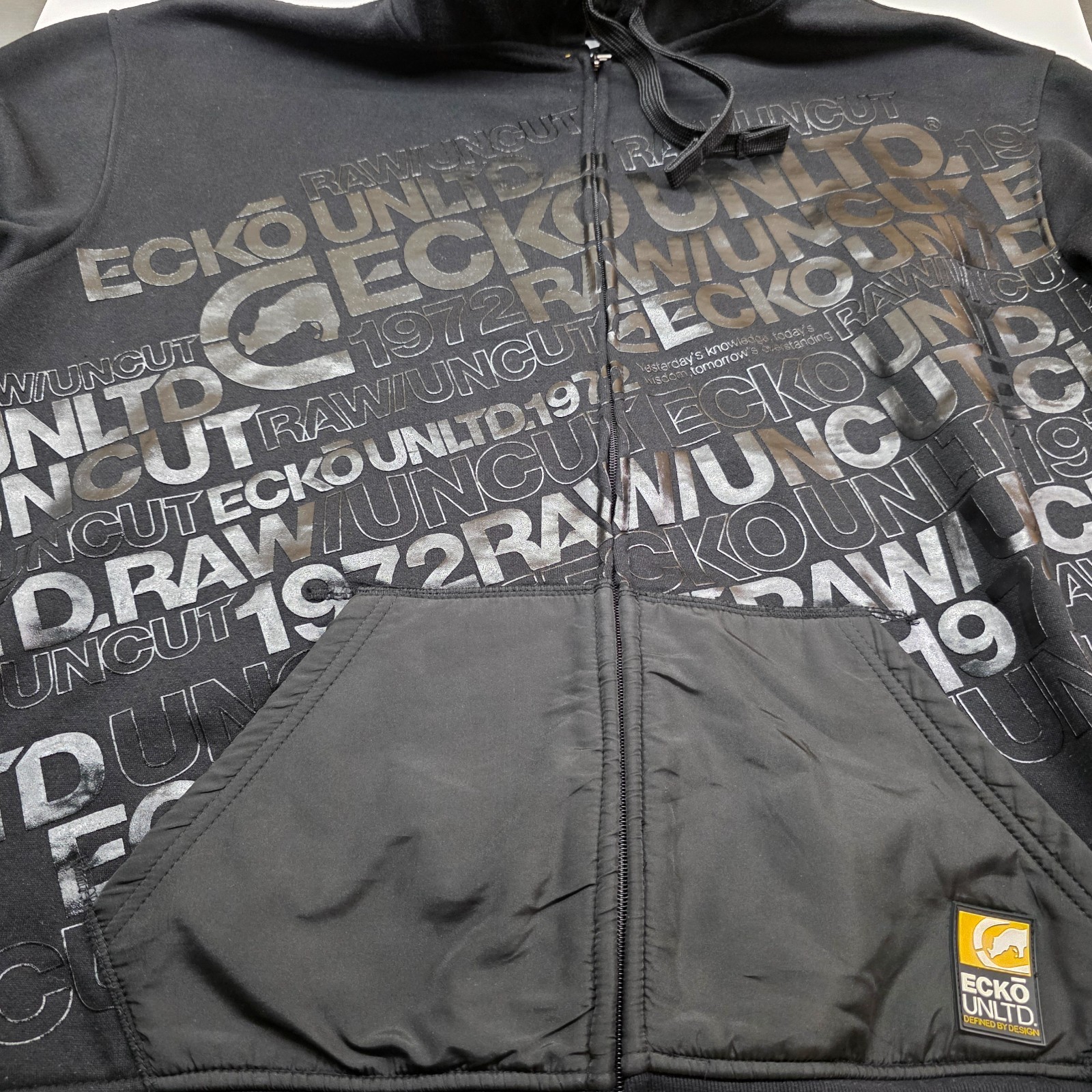 Ecko Unltd Full Zip Hoodie Men XL Rhino Gloss AOP Print Lined Hood Elbows Y2K