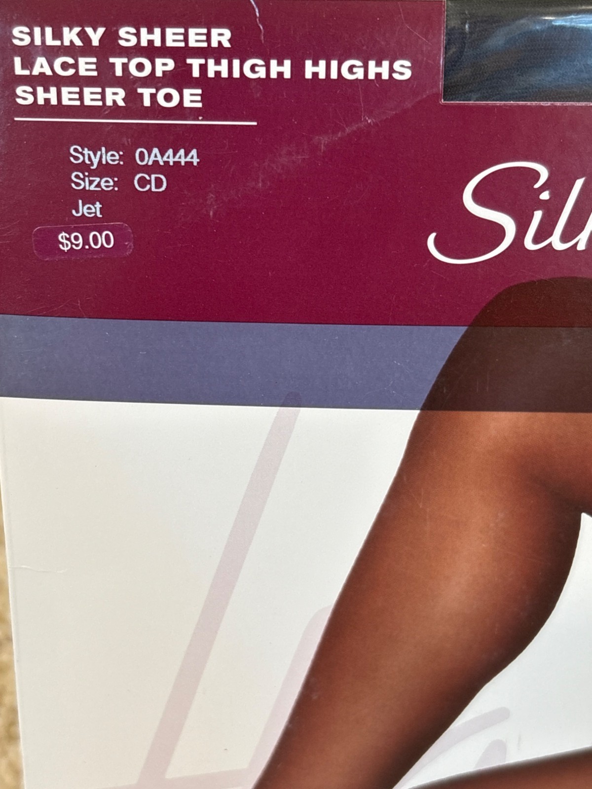Hanes Silk Reflections Lace Top Thigh Highs Sheer Toe Style 0A444 Size CD Black
