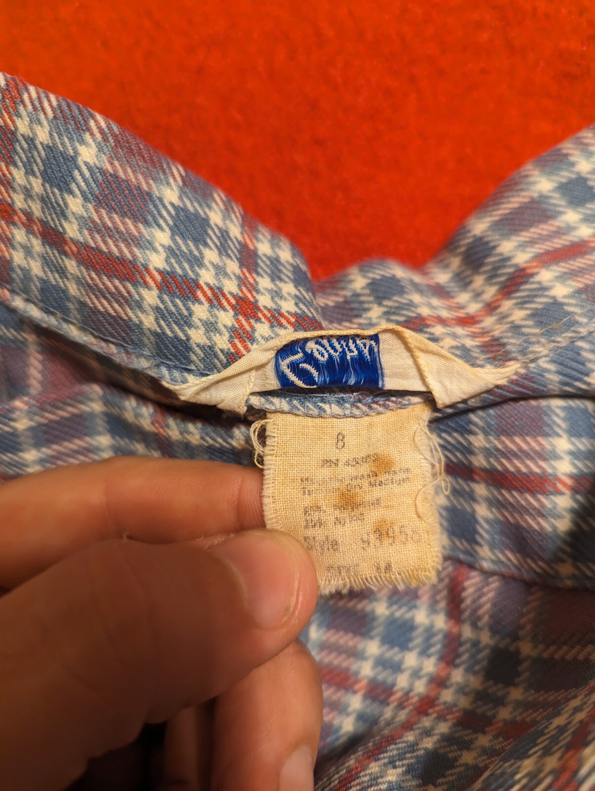 Vintage 60s 70s Sears Blue Red Plaid Flair Bellbottom Pants Size 8 28x34