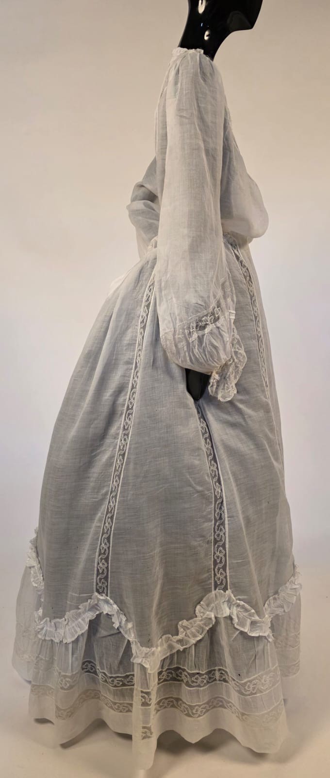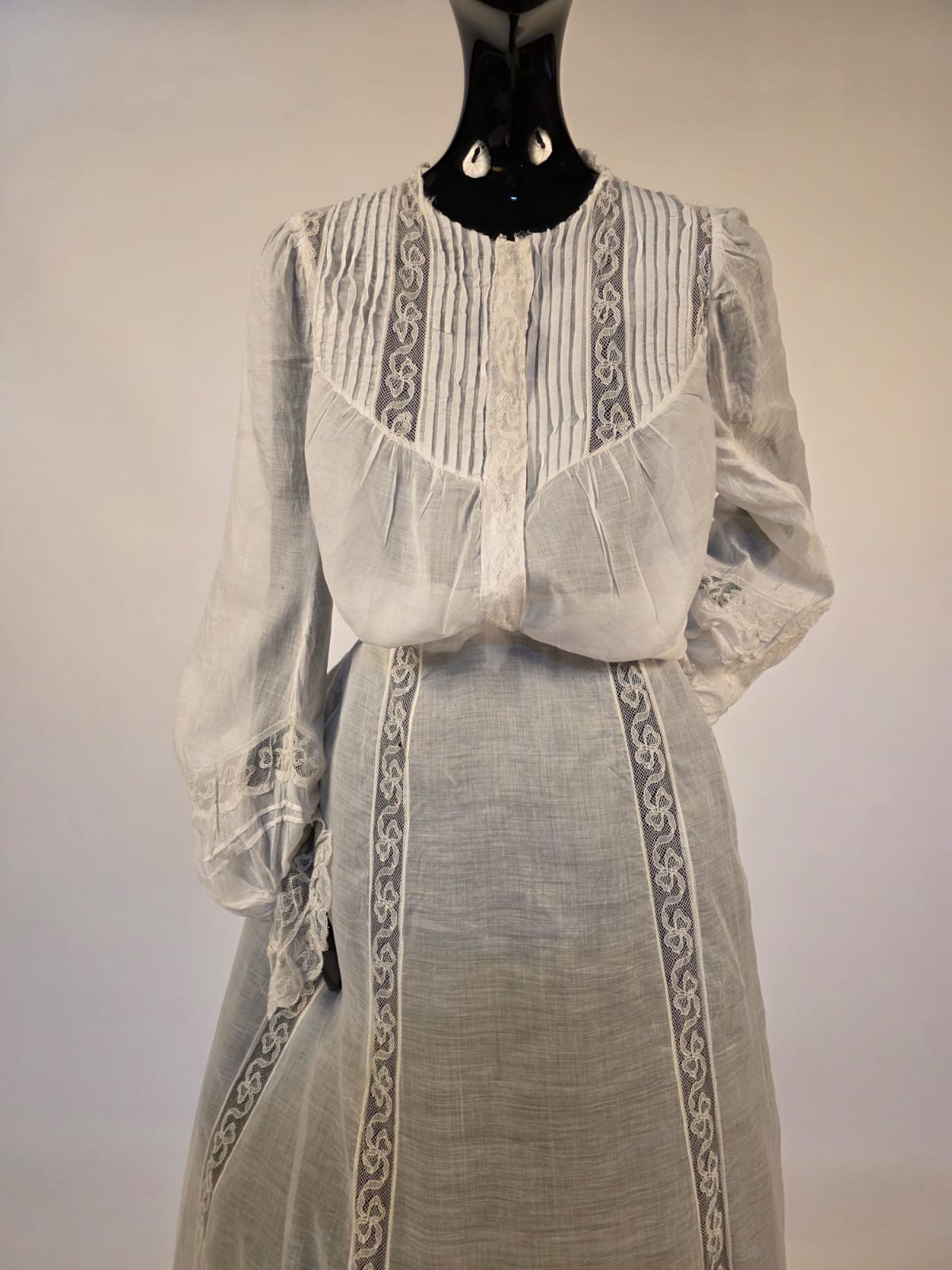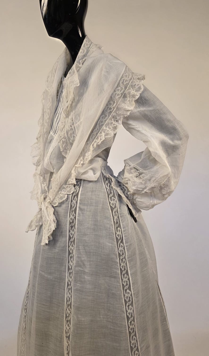 EDWARDIAN 3 PC WHITE COTTON BATISTE DRESS W VALENCIENNES LACE INSERTION