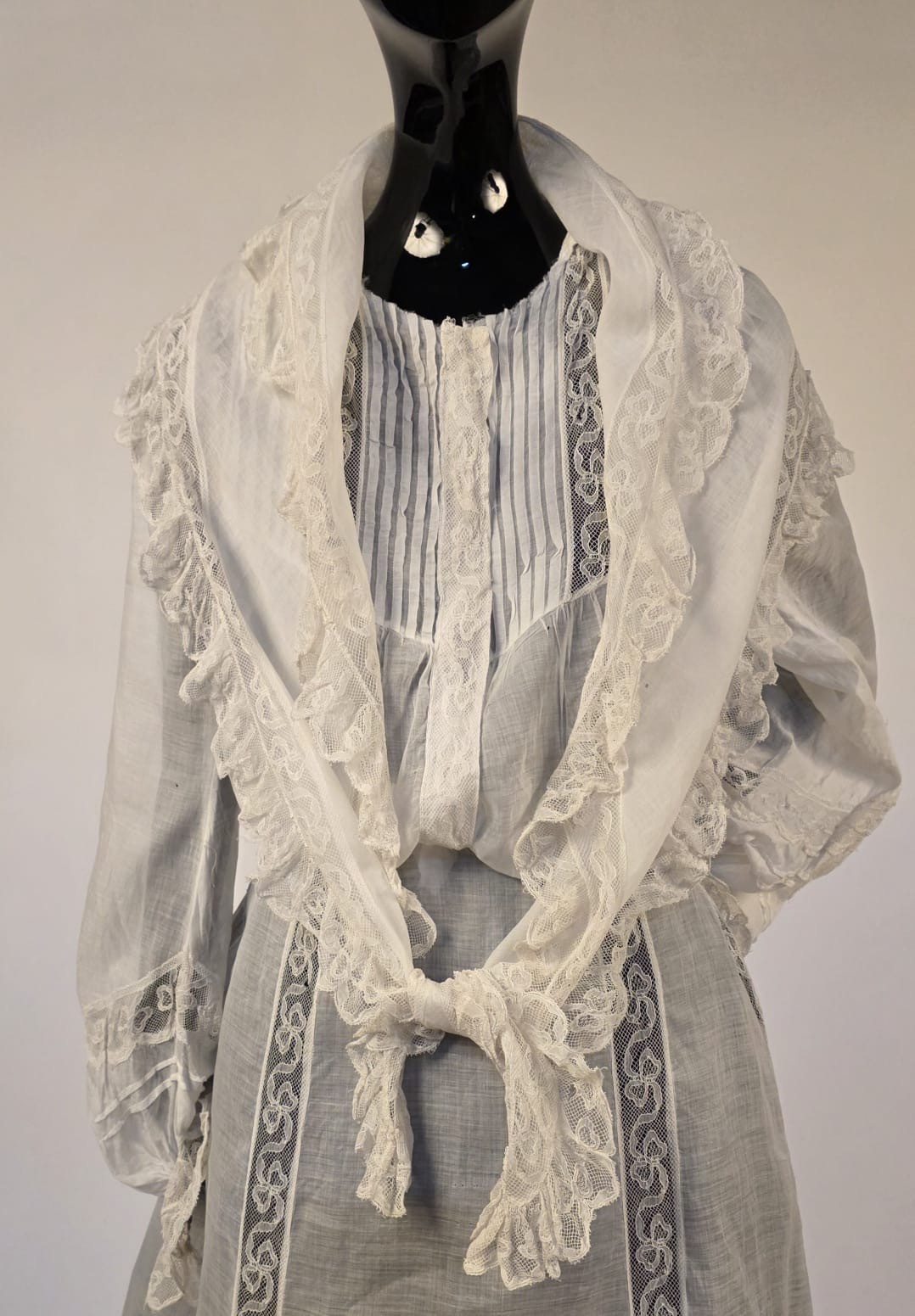как выглядит EDWARDIAN 3 PC WHITE COTTON BATISTE DRESS W VALENCIENNES LACE INSERTION фото