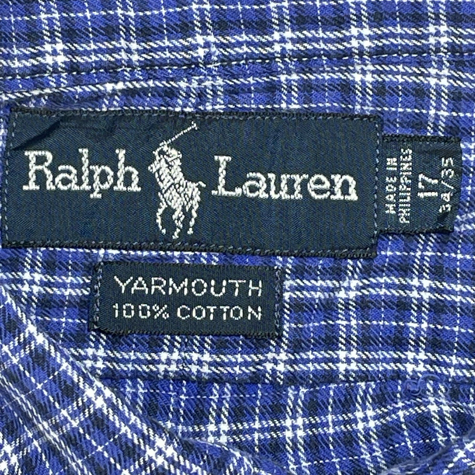 Ralph Lauren Shirt Mens Sz XL Blue Check Yarmouth Long Sleeve Lightweight Cotton