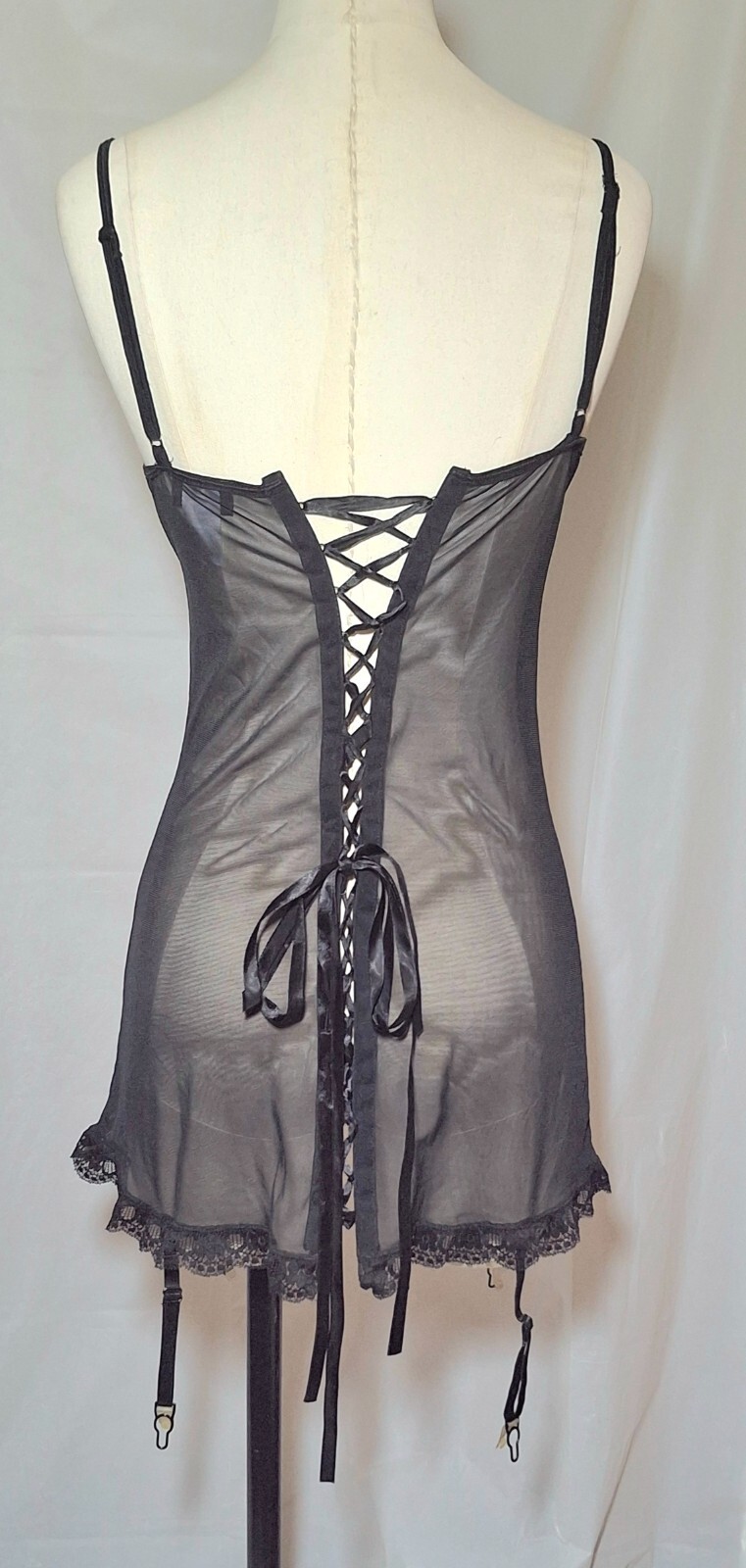 Dreamgirl Black Red Floral Lace Underwire Garter Chemise Size L