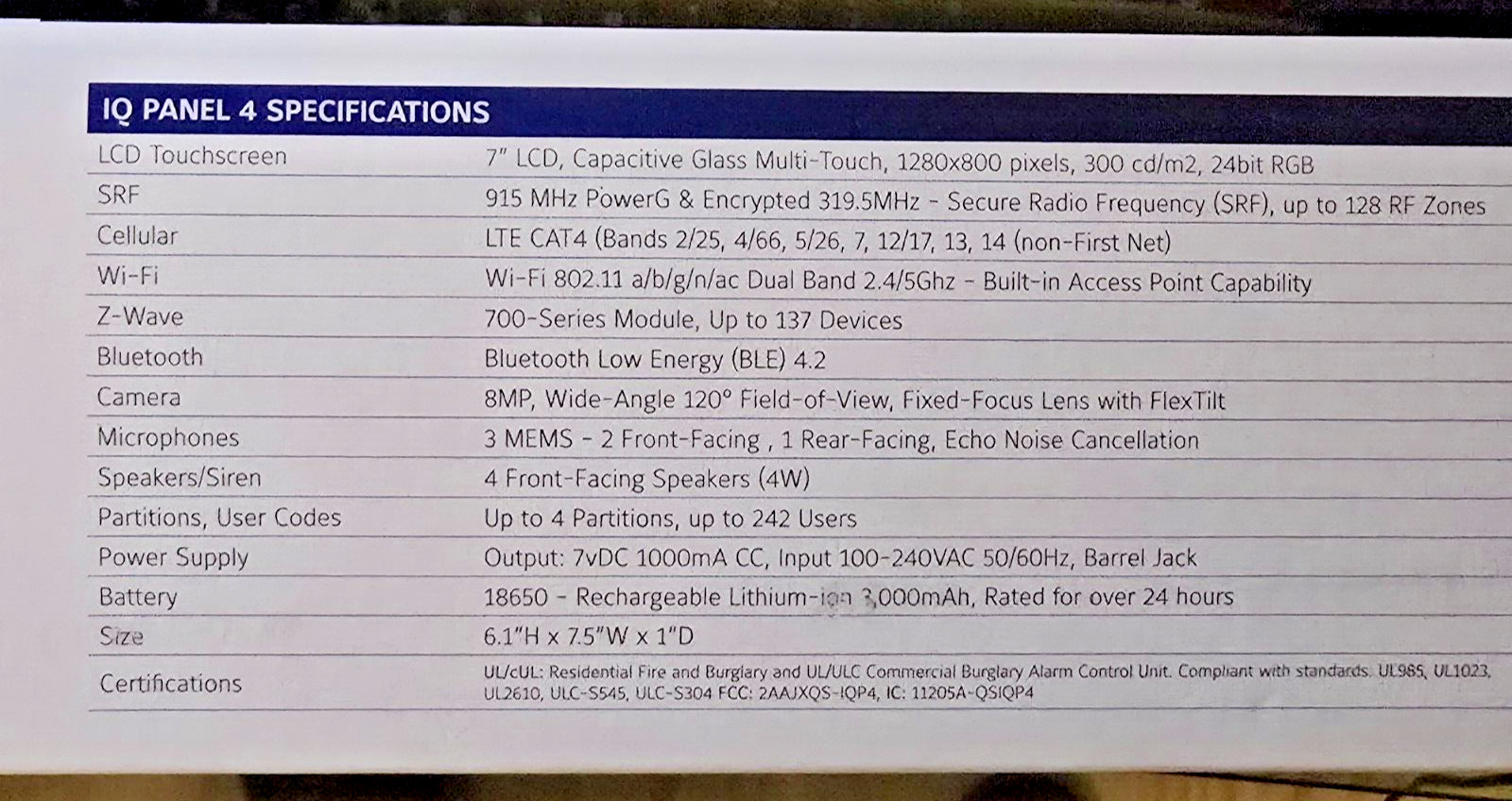 Qolsys IQ Panel 4 PowerG 319.5 MHz, White NOB