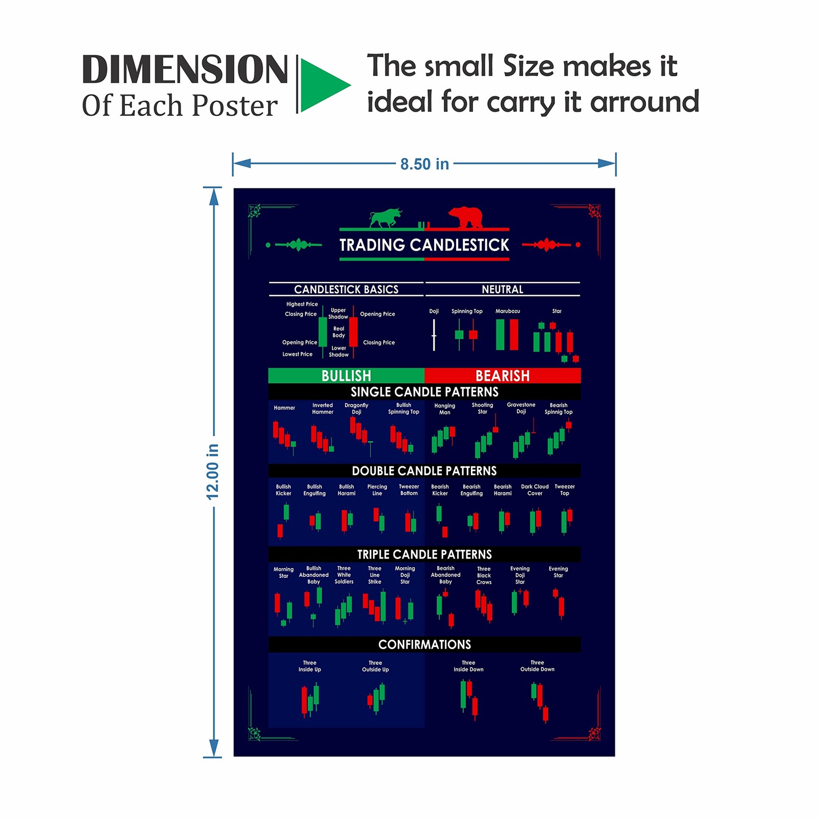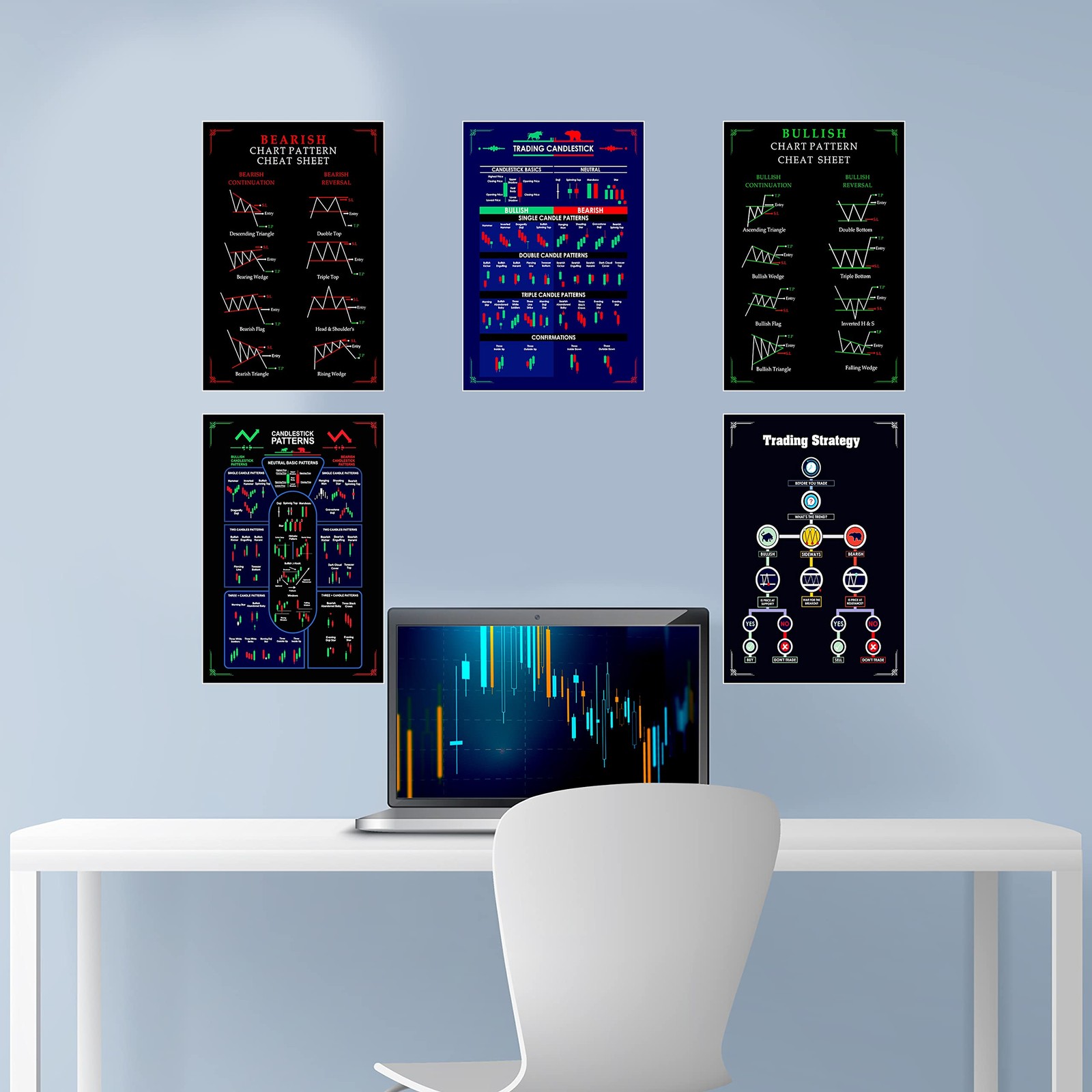 Gimly - Trading Chart Set of 5 Pattern Posters, 350 GSM Candle Chart Poster