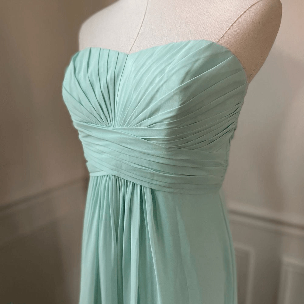 David s Bridal Mint Green Strapless Formal Gown Bridesmaid Dress Flowy Chiffon 8