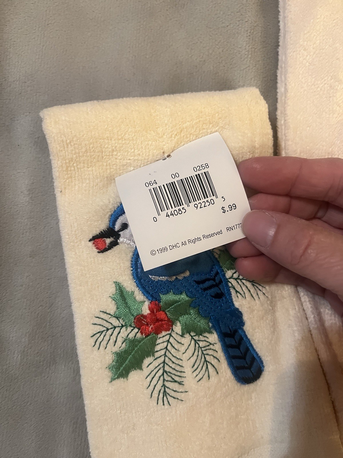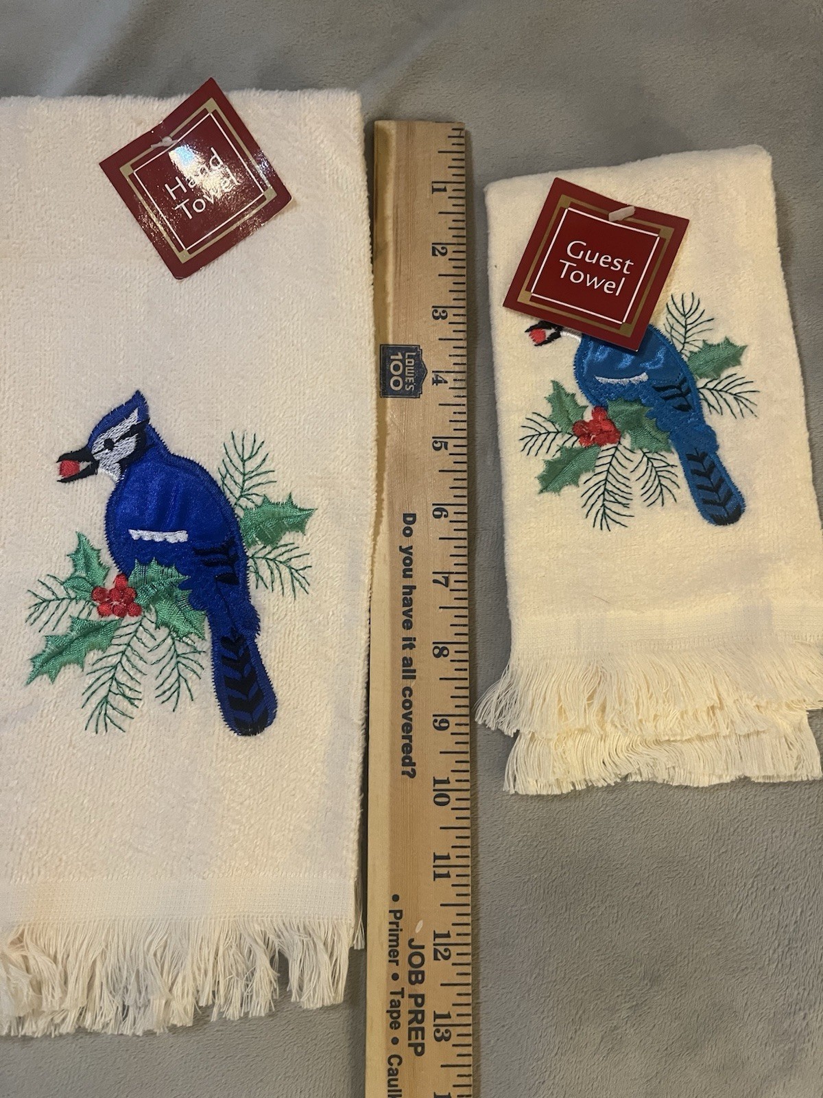 как выглядит Vintage Hand Towels Bird Birds Finger Vibrant Fringe Cardinal Blue Jay winter фото
