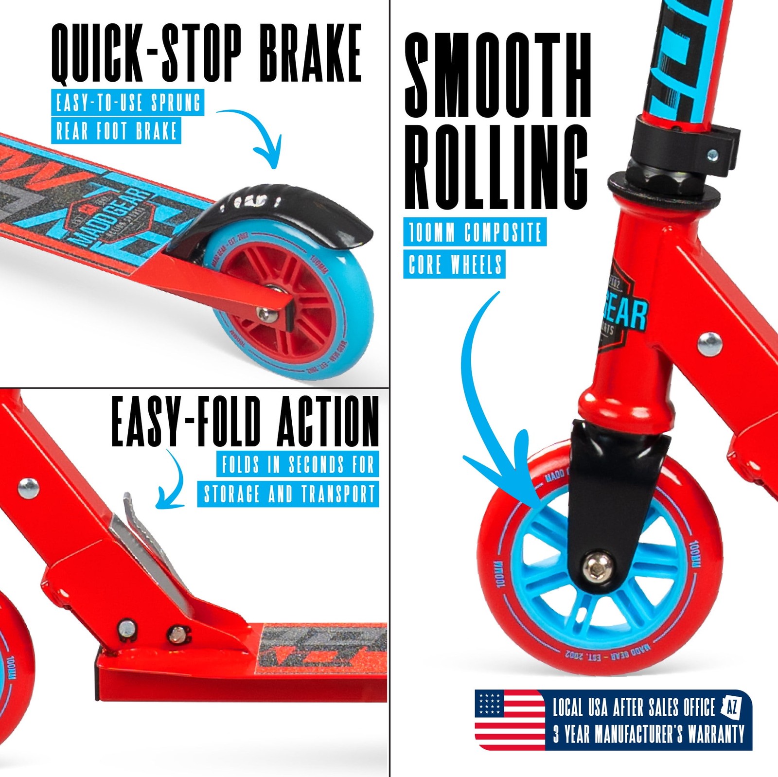 Madd Gear Kids Folding Kick Scooter Lightweight Steel Frame, Ages 3